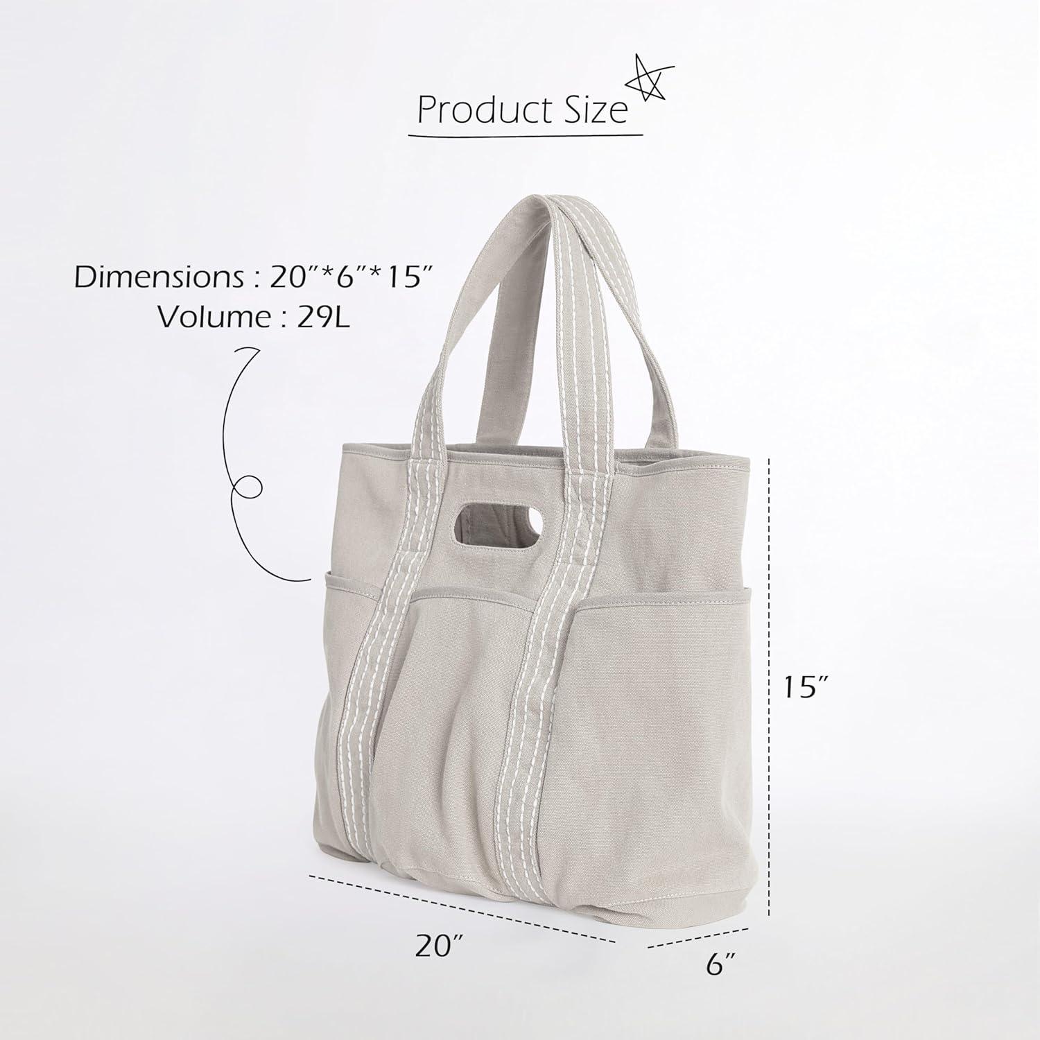 imageODODOS 29L Oversized Canvas Tote Bag Large Capacity Open Top Shoulder Bags for Gym Workout Shopping Beach TravelLight Grey