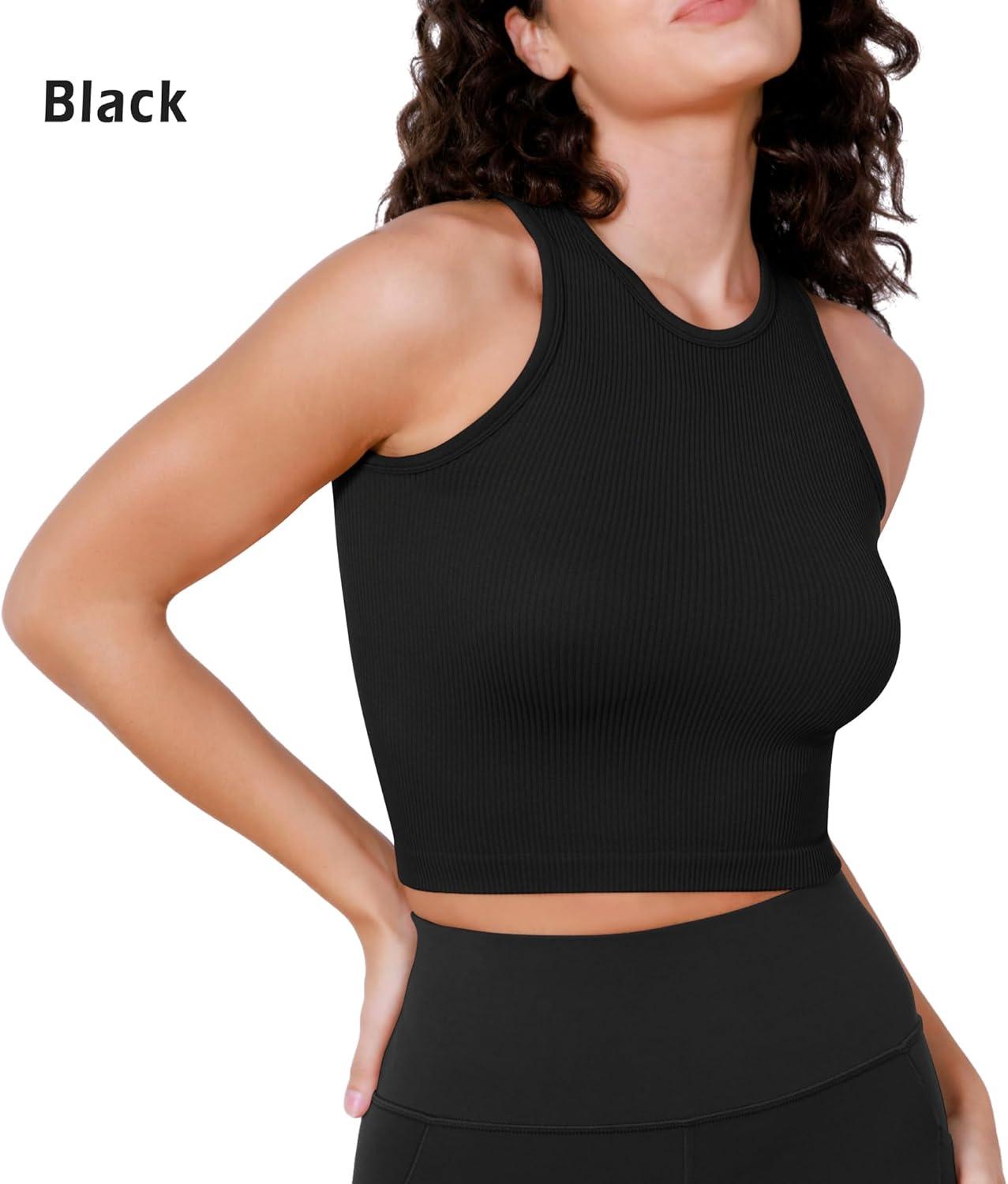Get up to 50% off on ODODOS 3-Pack Seamless Crop Tank for Women Ribbed Soft High Neck Cropped Tops(Black+beige+star White) styles during our spring sale event.