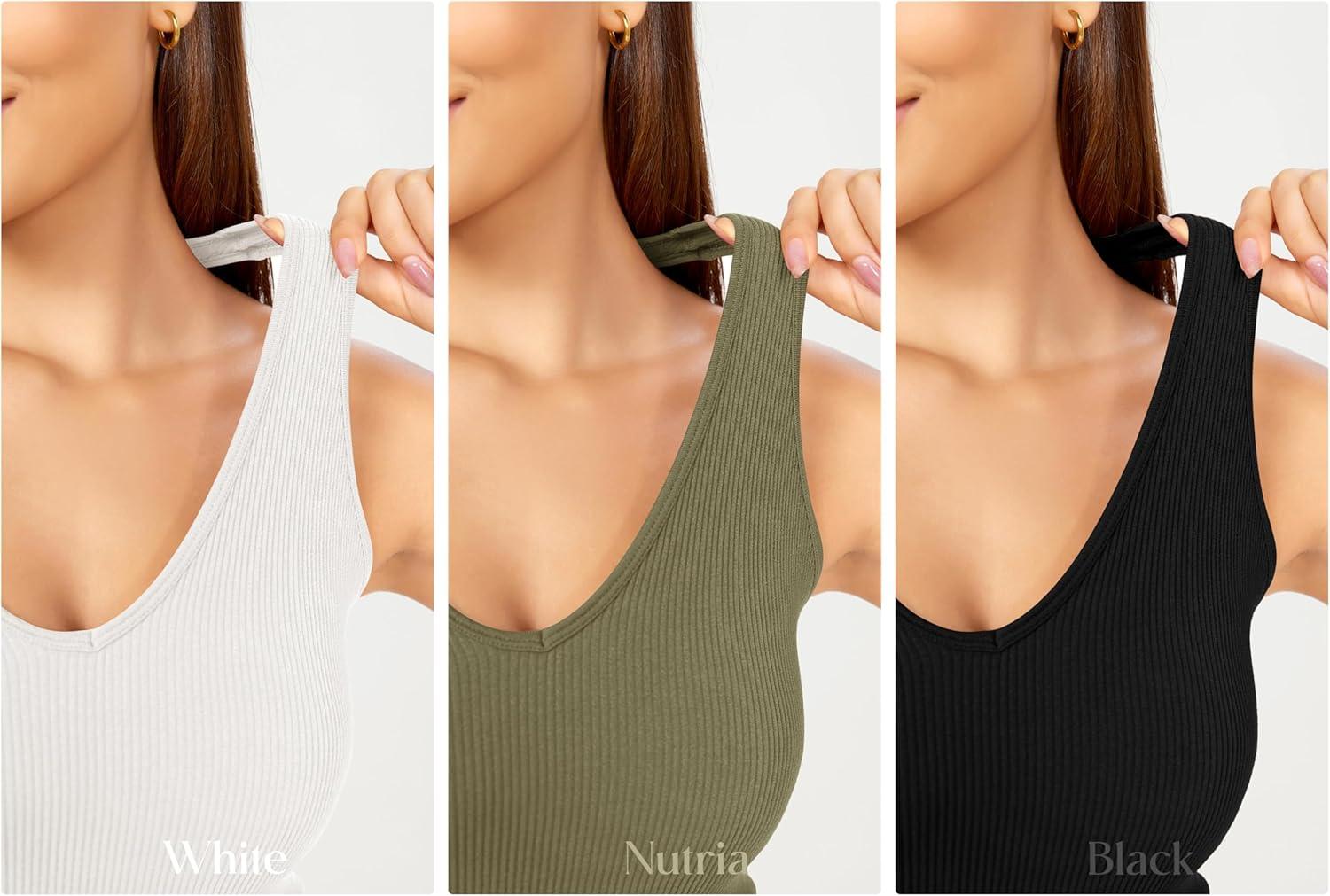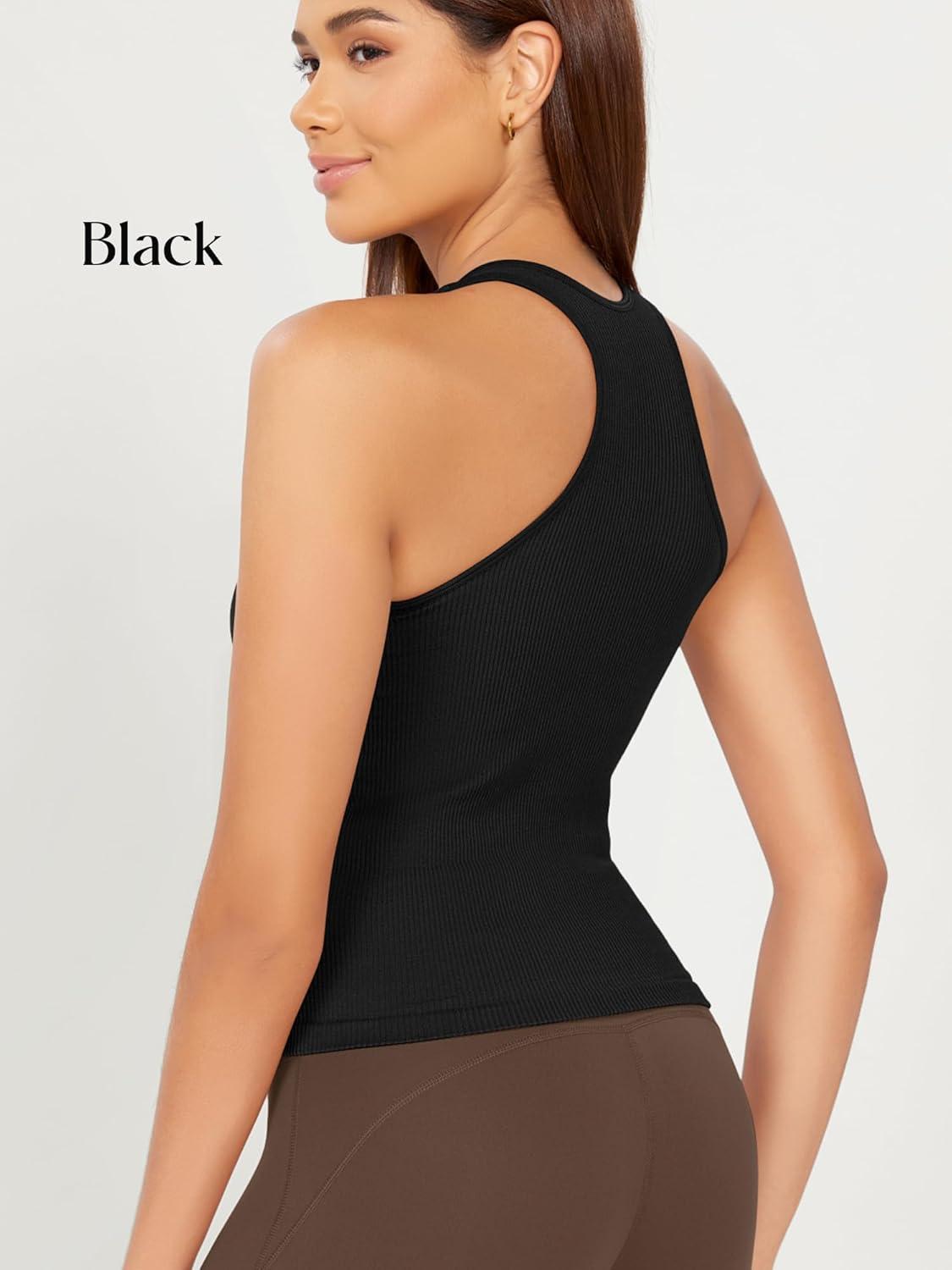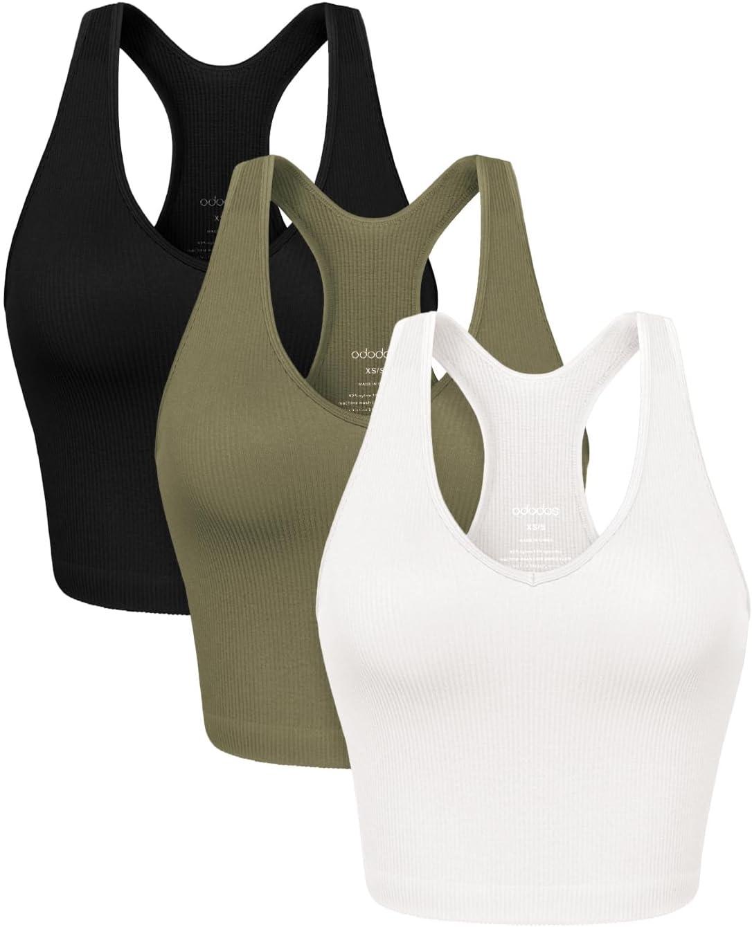 imageODODOS 3Pack Seamless Racerback Crop Tank for Women Ribbed Knit Soft Crop TopsBlacknutriawhite
