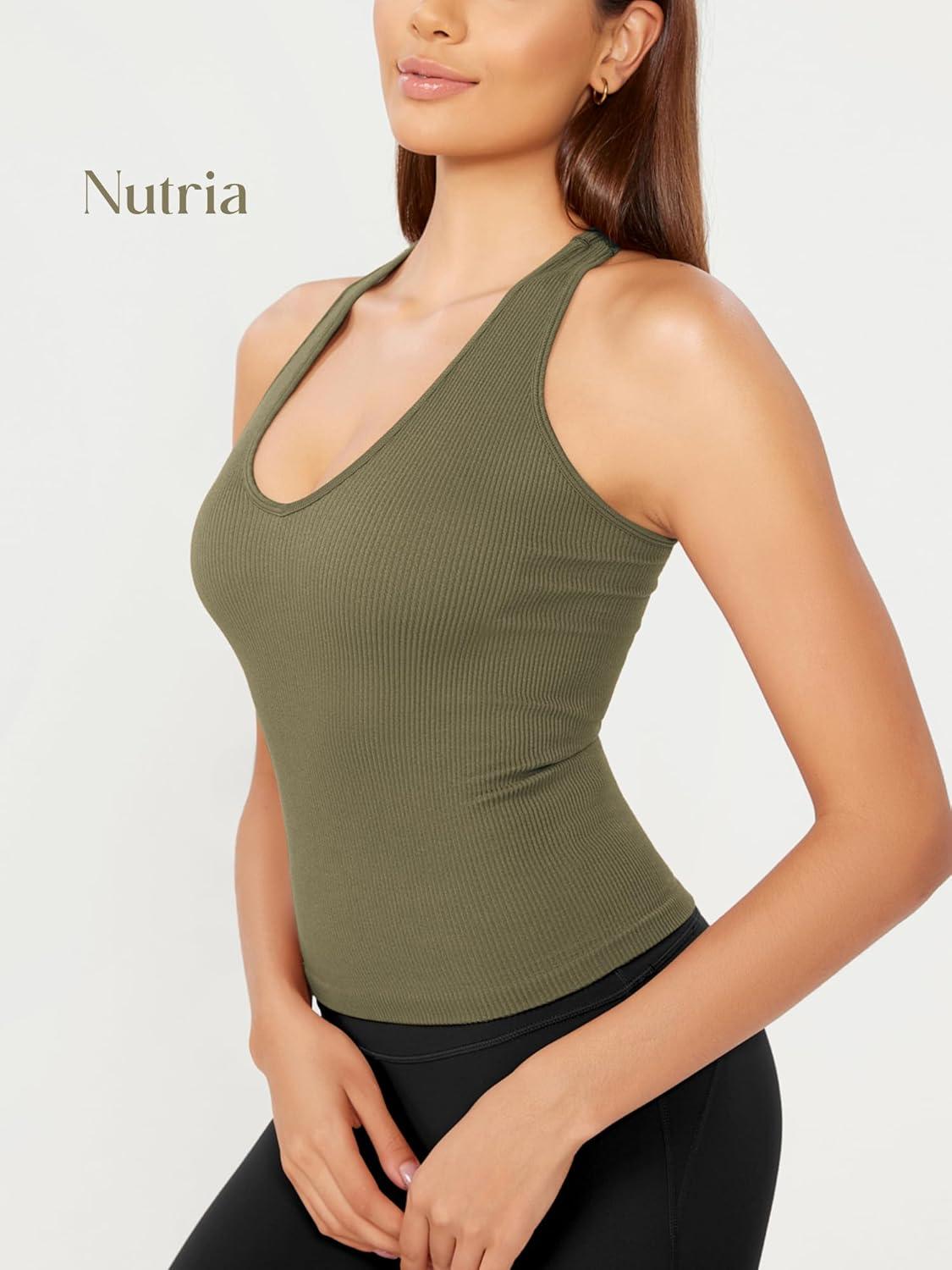 imageODODOS 3Pack Seamless Racerback Crop Tank for Women Ribbed Knit Soft Crop TopsIvorynavynutria
