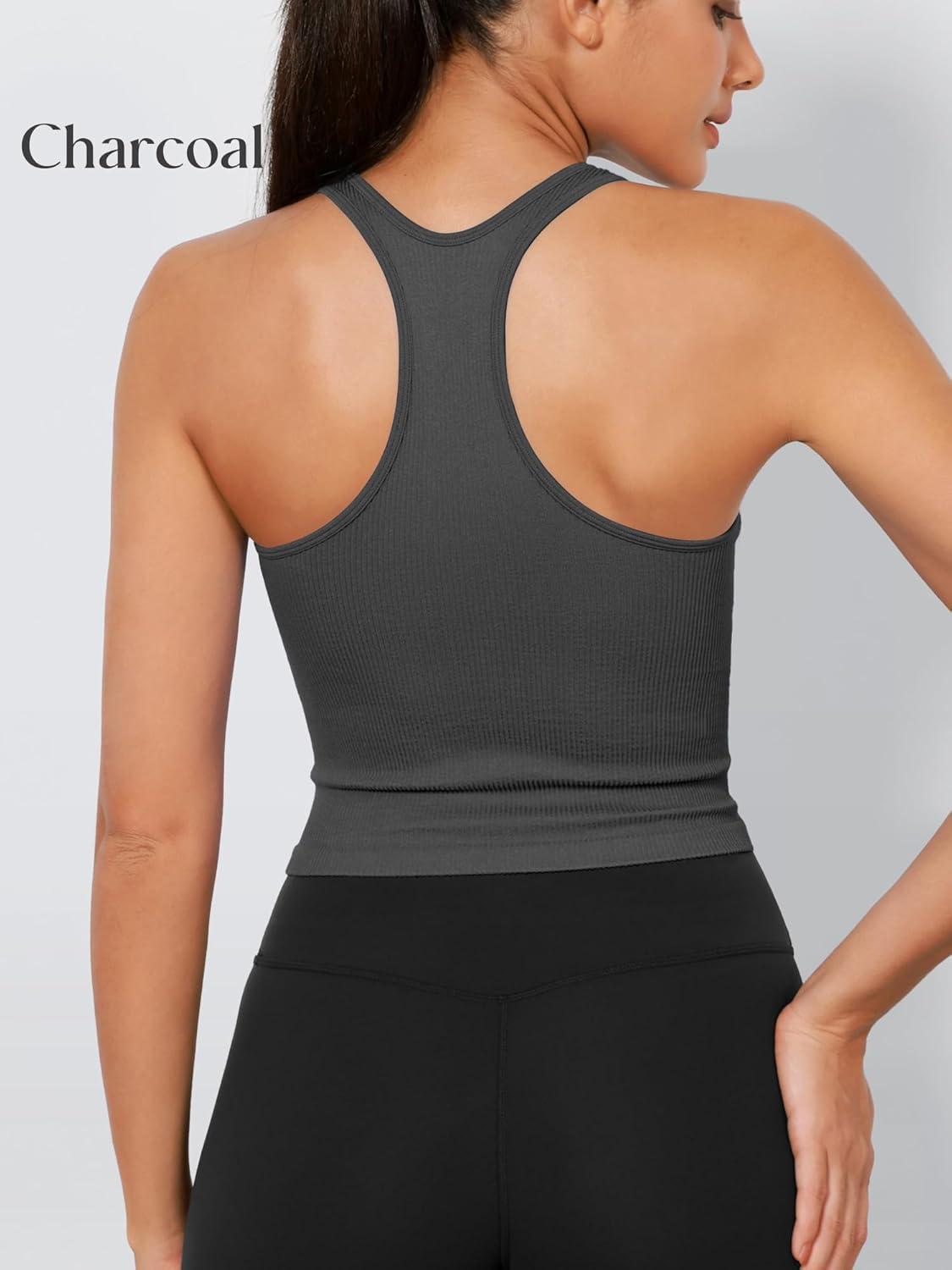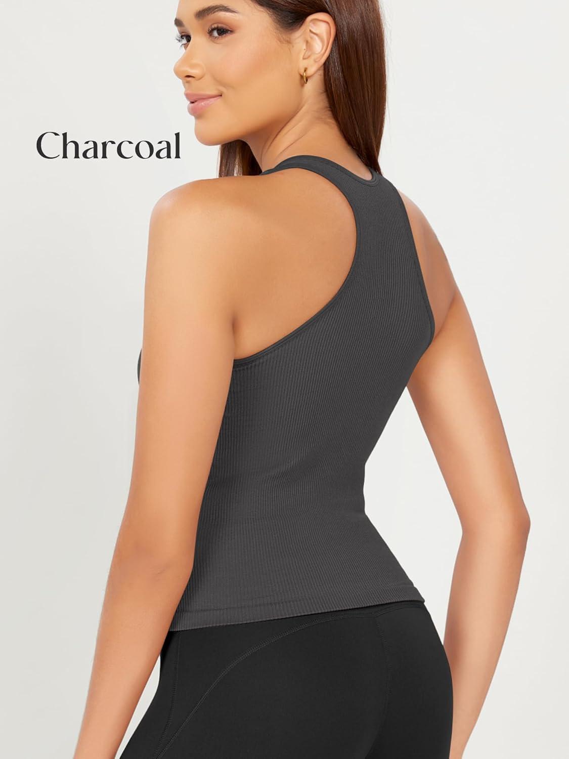 imageODODOS 3Pack Seamless Racerback Crop Tank for Women Ribbed Knit Soft Crop TopsCharcoalerminered