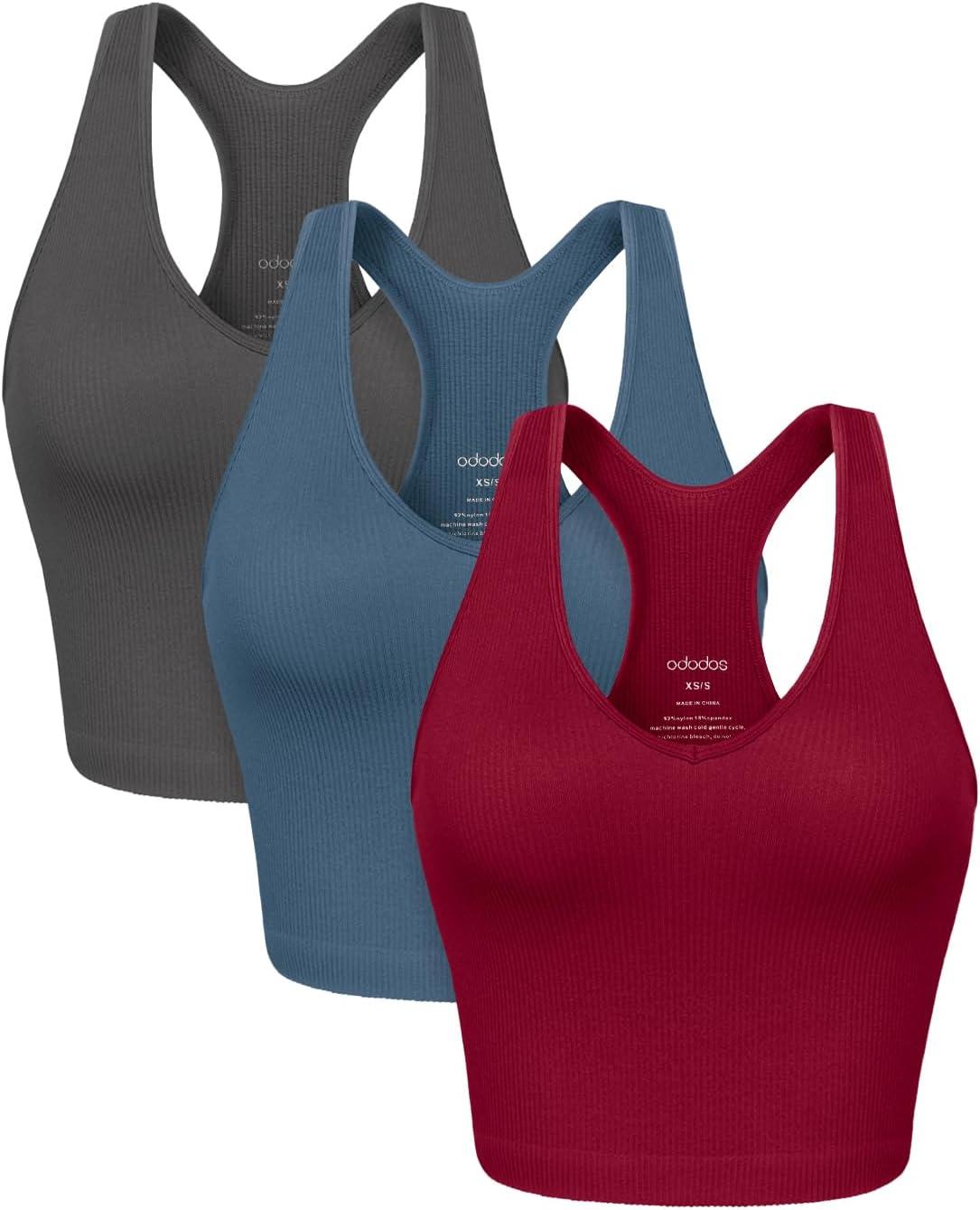 Get up to 70% off on ODODOS 3-Pack Seamless Racerback Crop Tank for Women Ribbed Knit Soft Crop Tops(Charcoal+ocean+red) styles during our end-of-season clearance event.