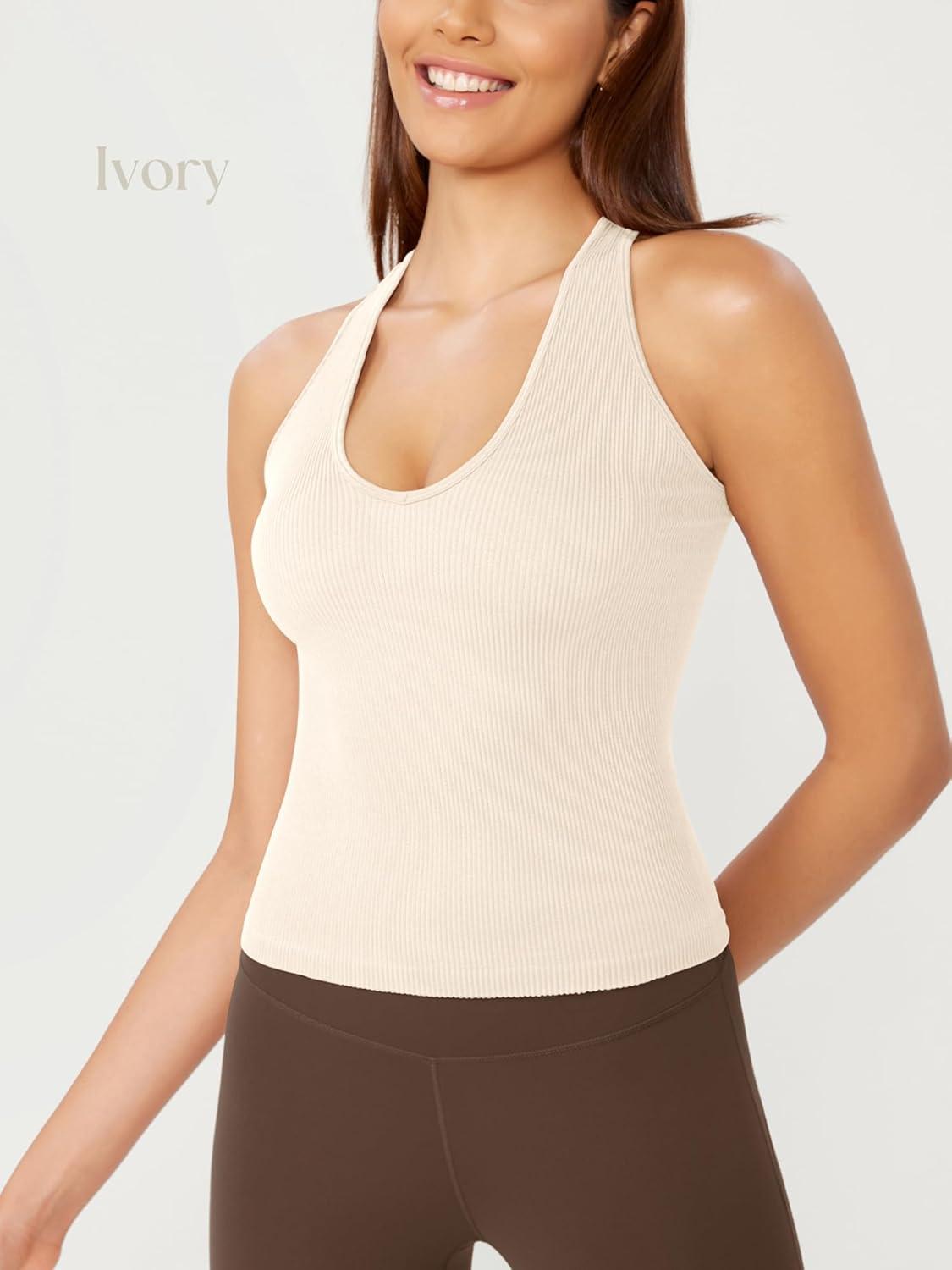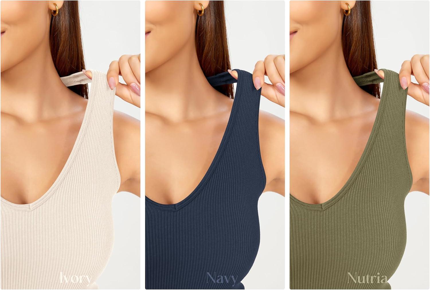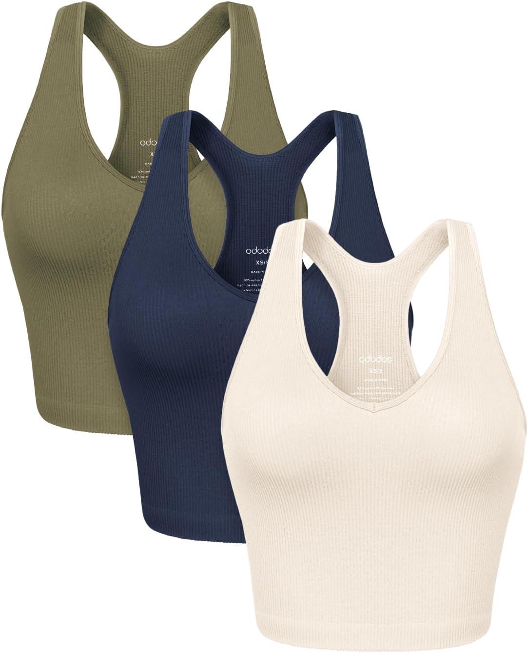 Get more for your money with our exclusive bundle deals on ODODOS 3-Pack Seamless Racerback Crop Tank for Women Ribbed Knit Soft Crop Tops(Ivory+navy+nutria) and accessories.