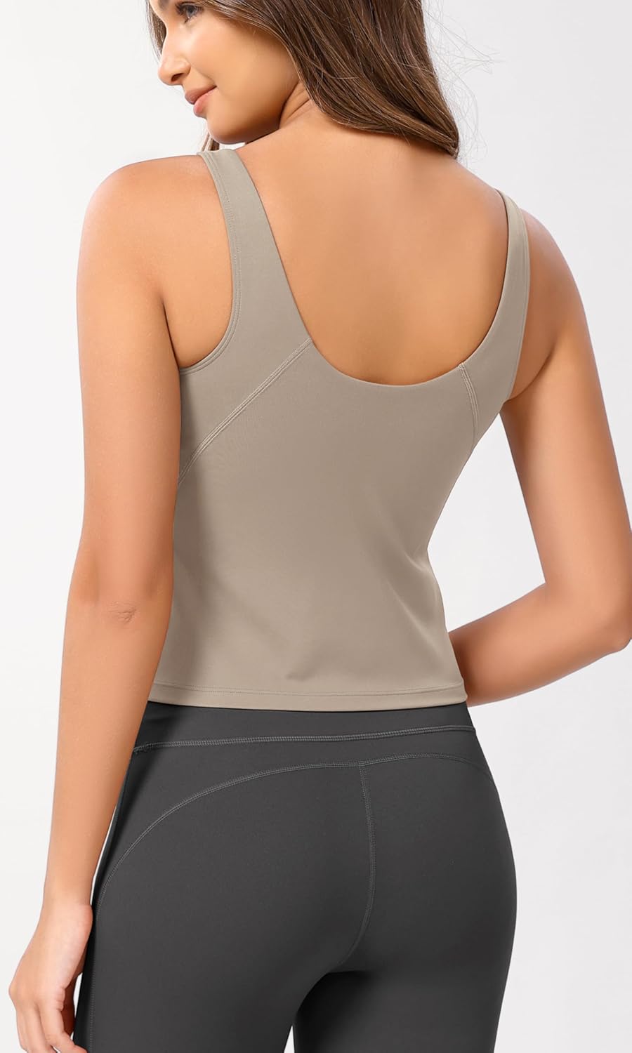 ODODOS Cloud Feeling Tank Bra for Women U Back Wirefree Longline Sports Bra Yoga Crop Top(Shaker Beige)