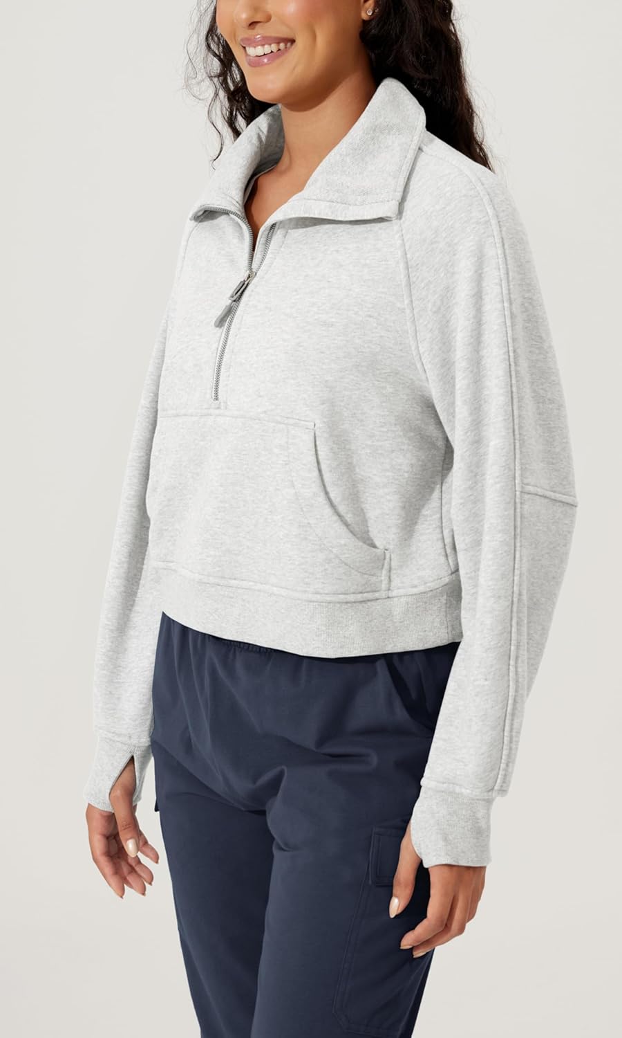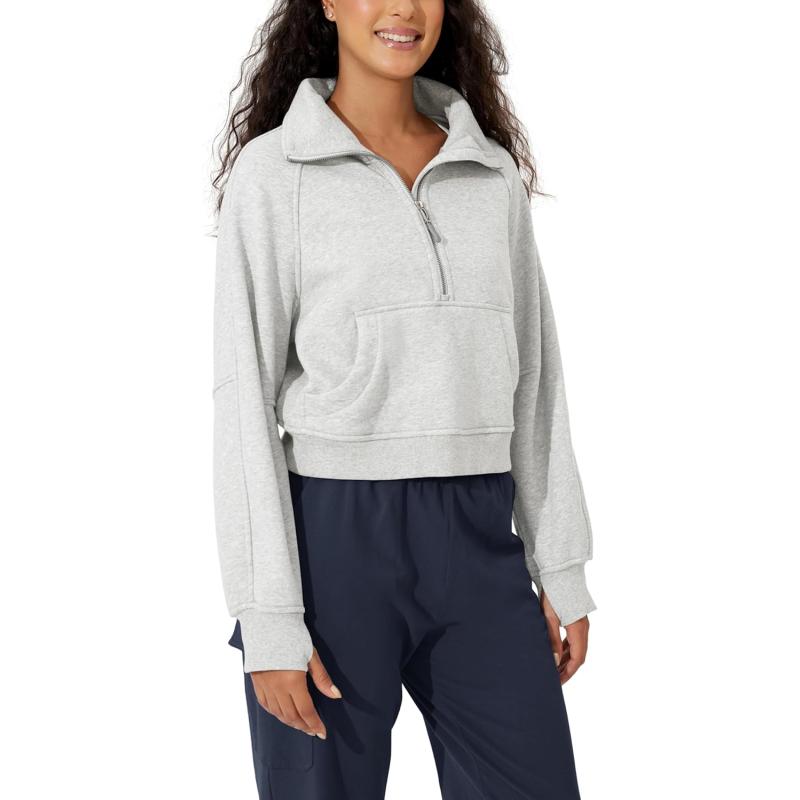 ODODOS Half Zipper Sweatshirts for Women Funnel Neck Fleece Lined Oversize Hoodies Cropped Pullover with Thumb Hole(Heather Grey)