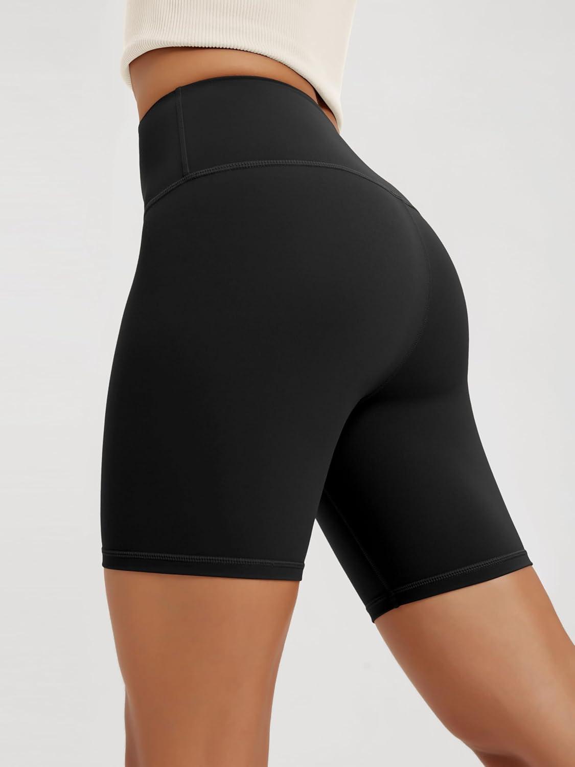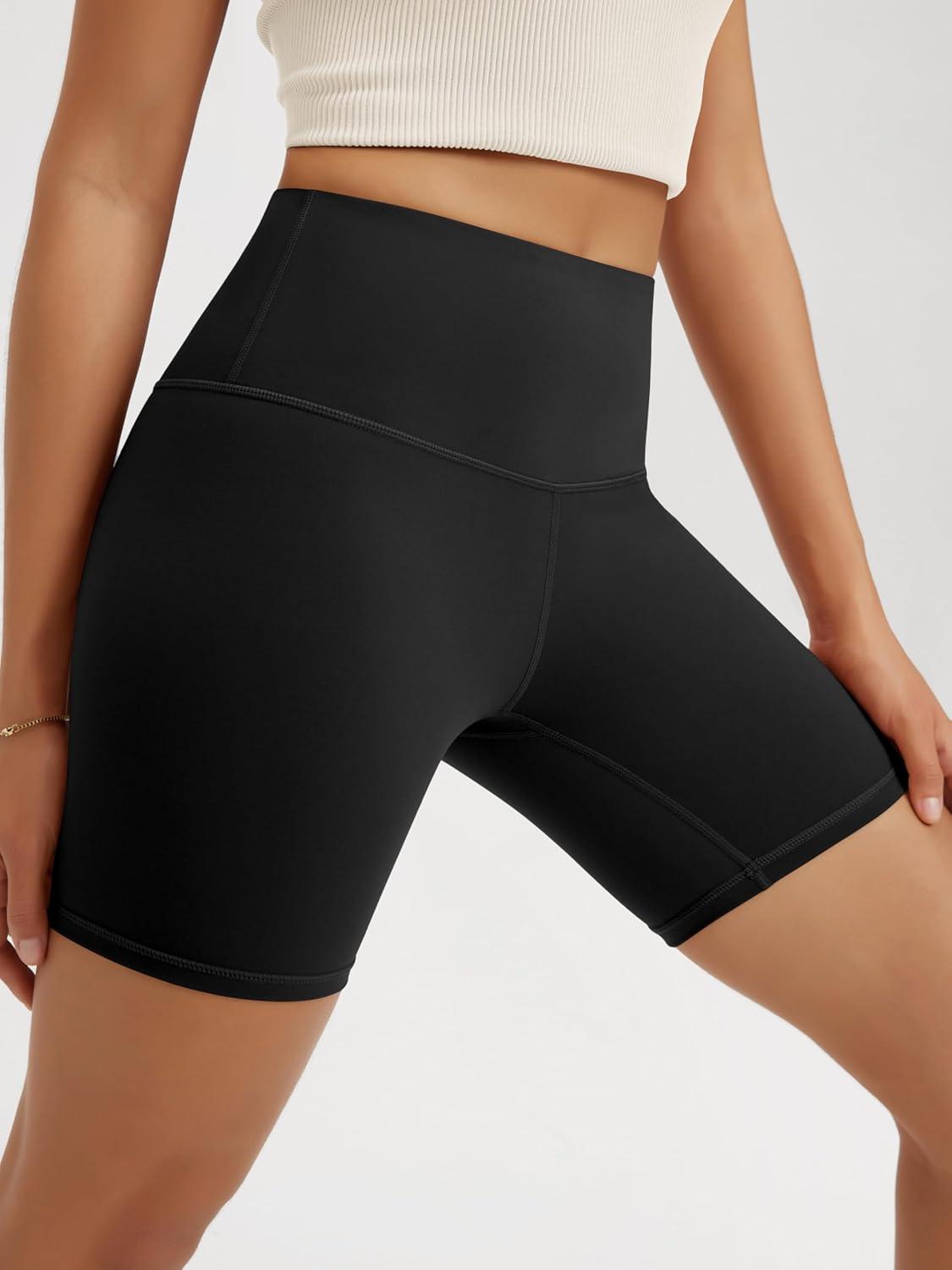 ODODOS High Waist Workout Shorts for Women Tummy Control Workout Gym Athletic Biker Shorts-6"/8" Inseam(Black)