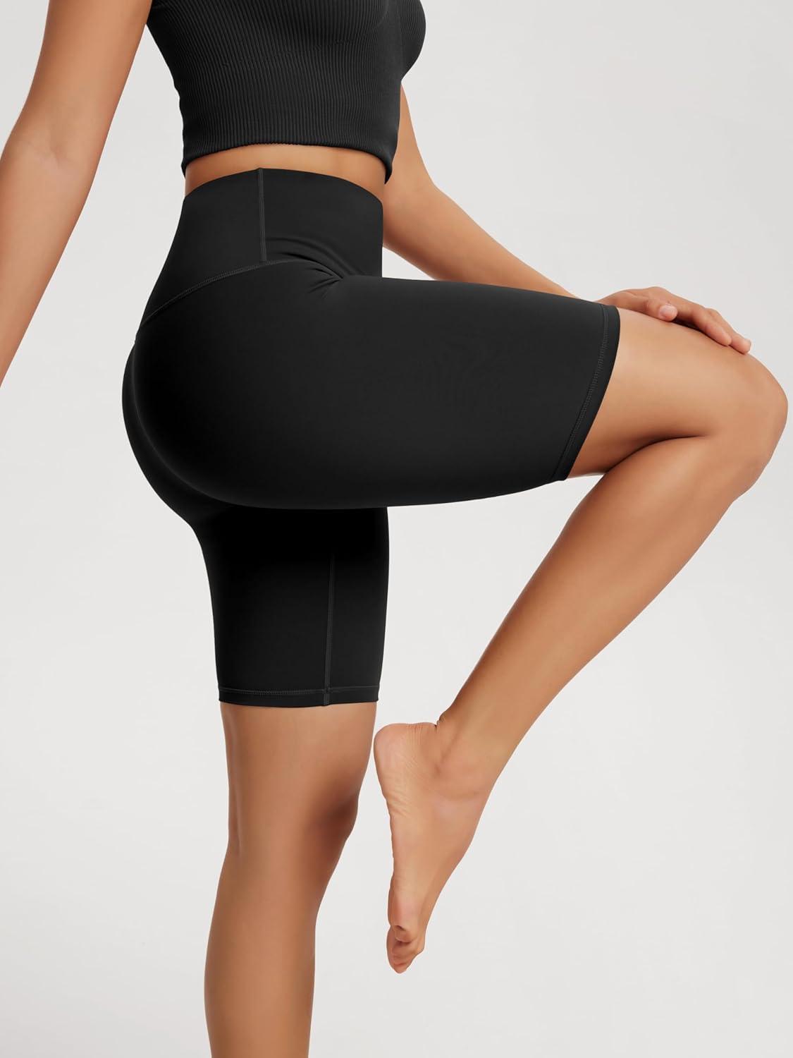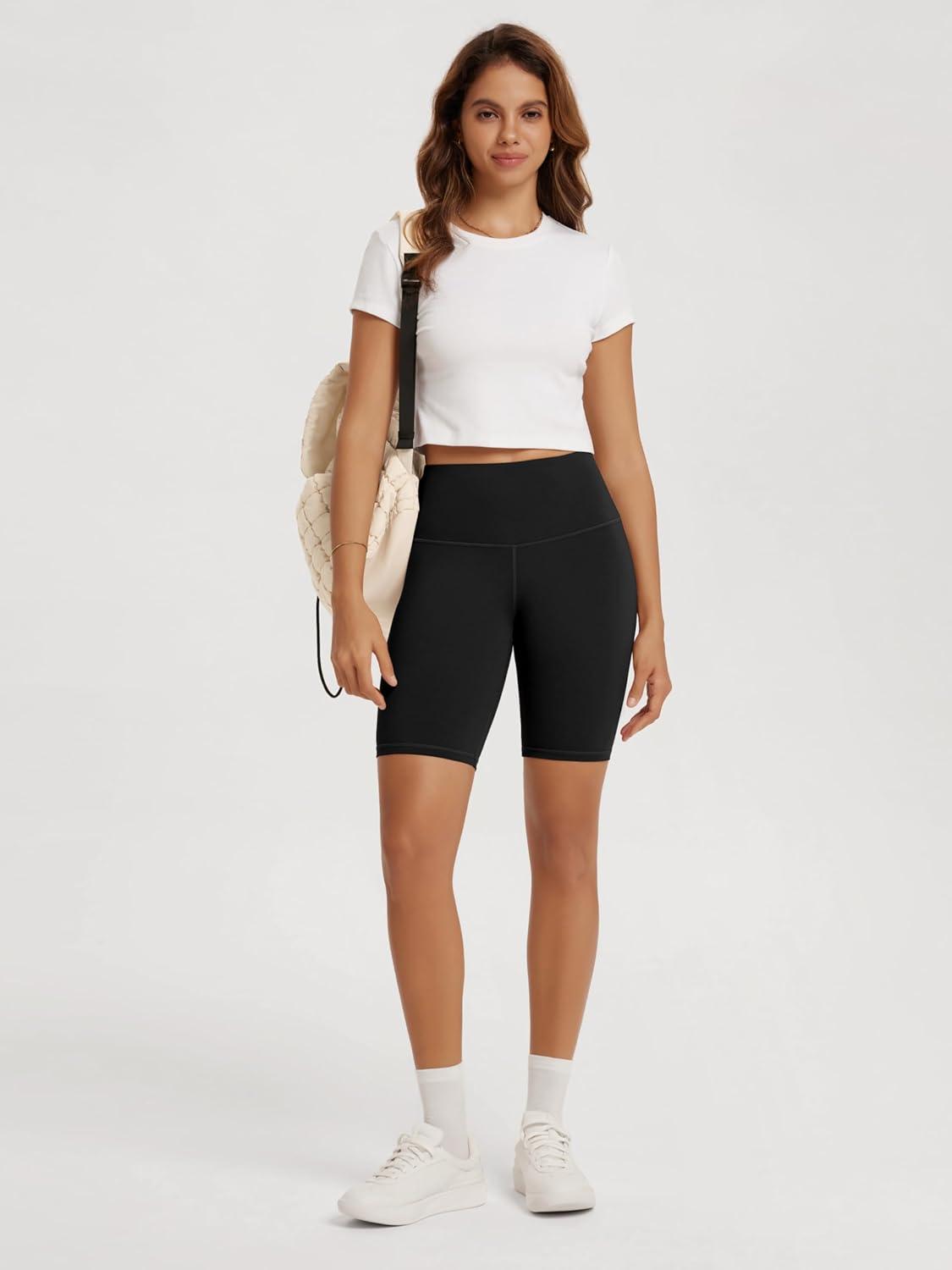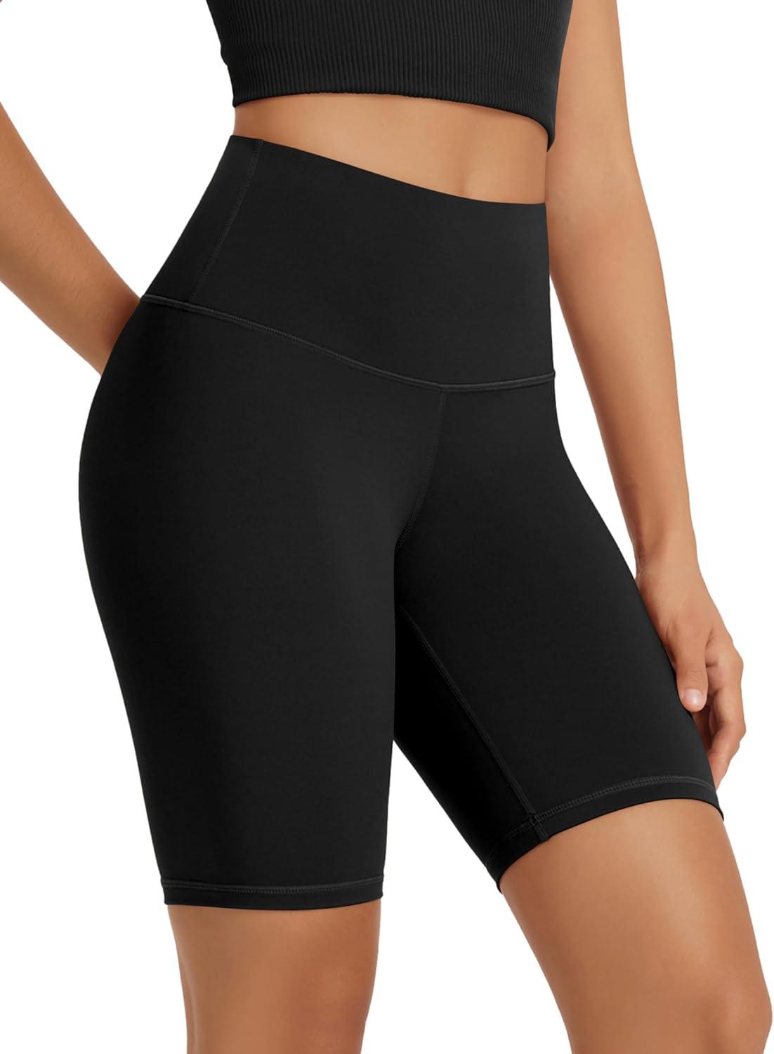 ODODOS High Waist Workout Shorts for Women Tummy Control Workout Gym Athletic Biker Shorts-6″/8″ Inseam(Black)