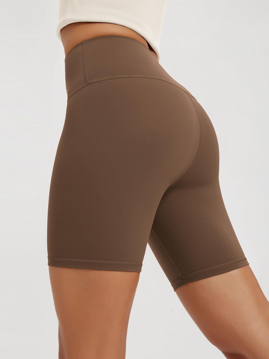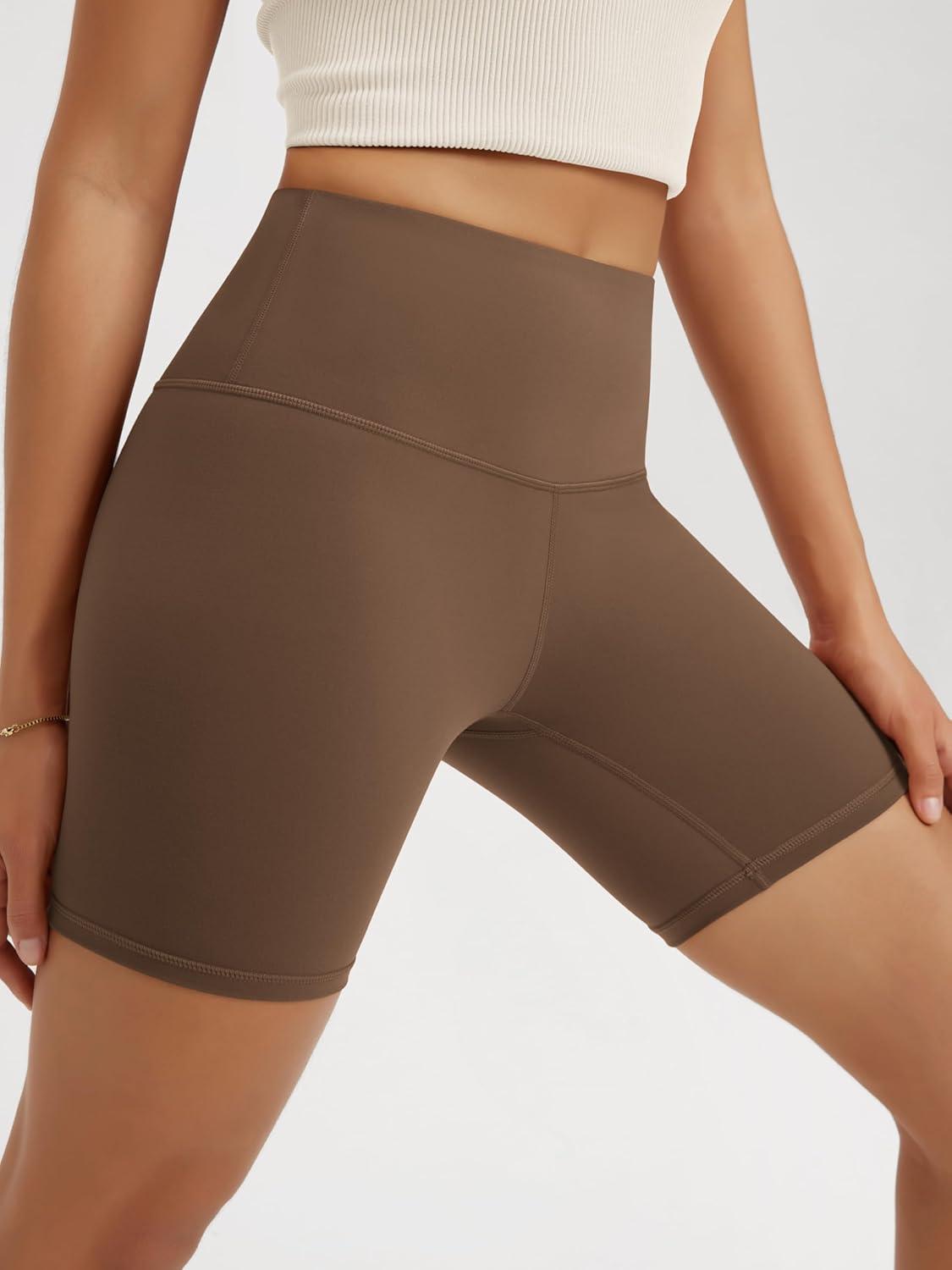 ODODOS High Waist Workout Shorts for Women Tummy Control Workout Gym Athletic Biker Shorts-6″/8″ Inseam(Brunette)