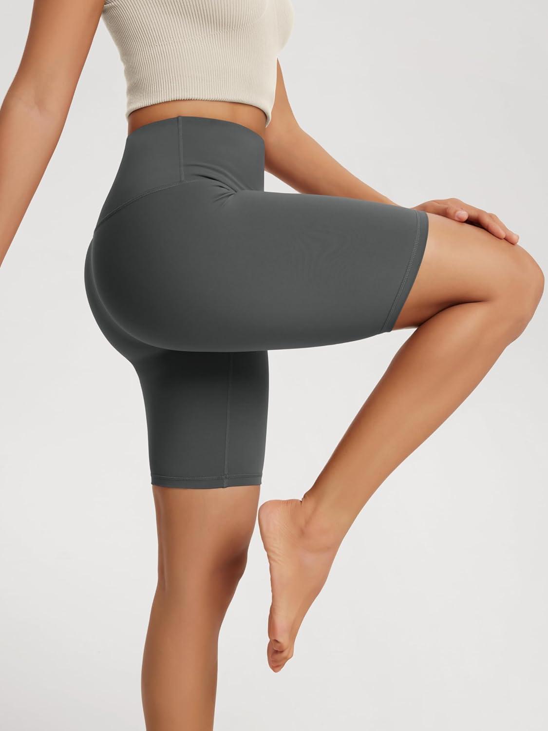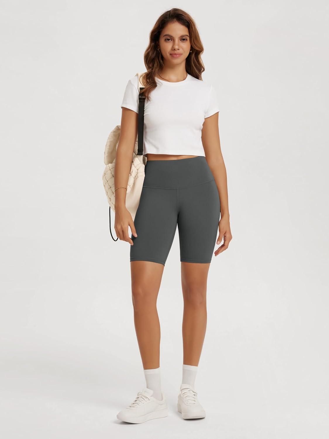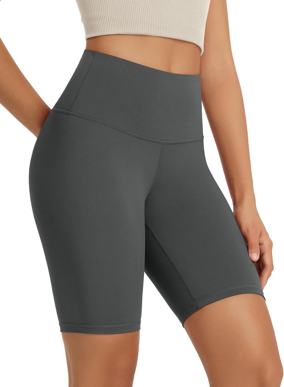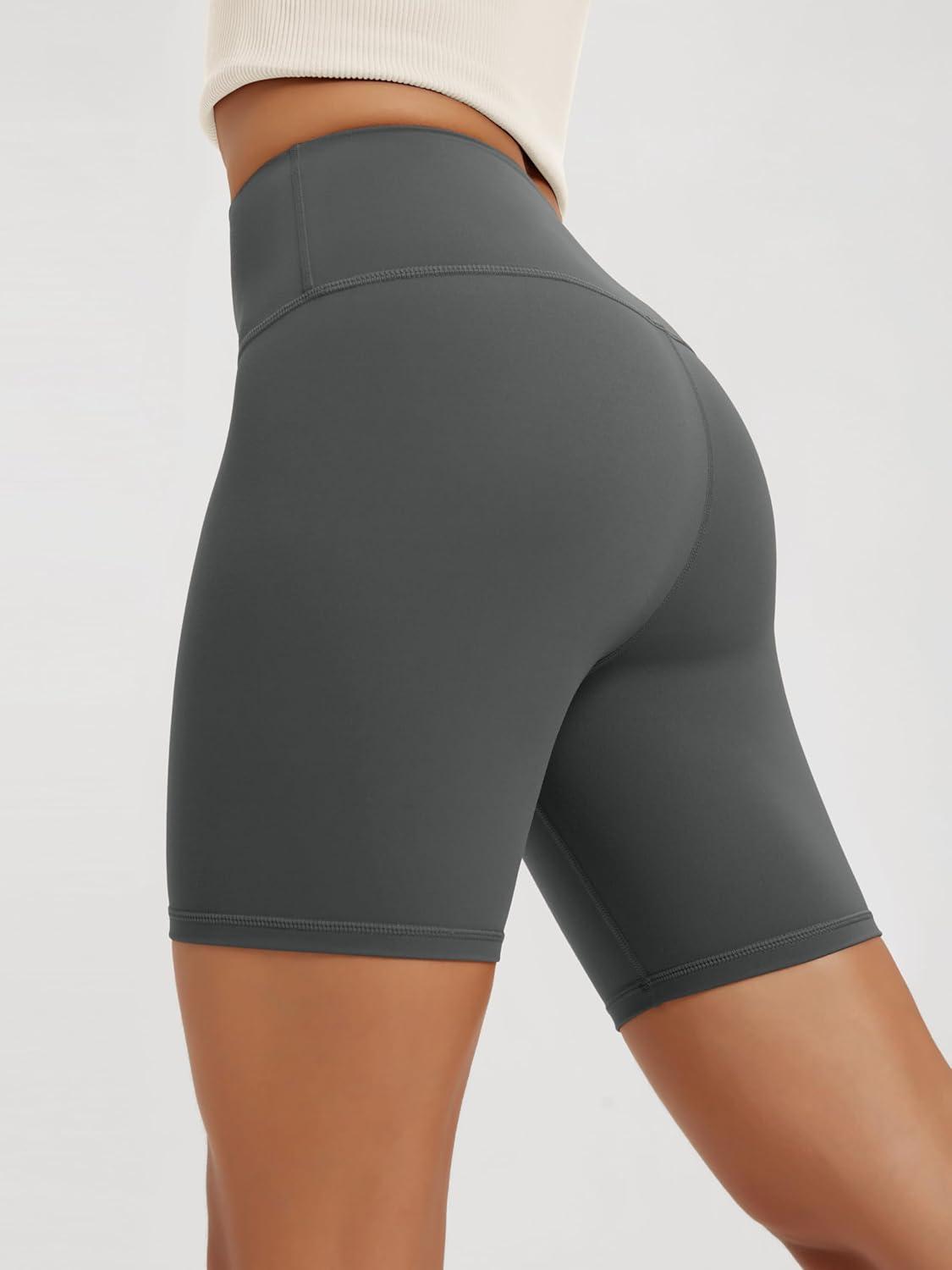 ODODOS High Waist Workout Shorts for Women Tummy Control Workout Gym Athletic Biker Shorts-6″/8″ Inseam(Charcoal)