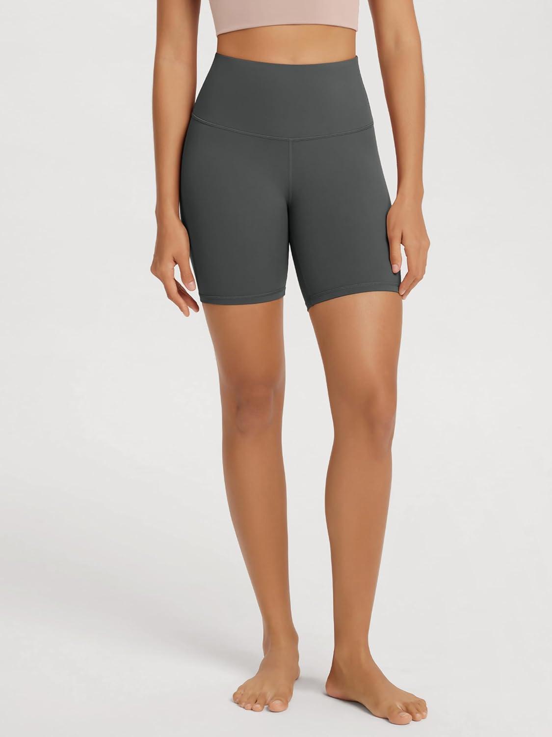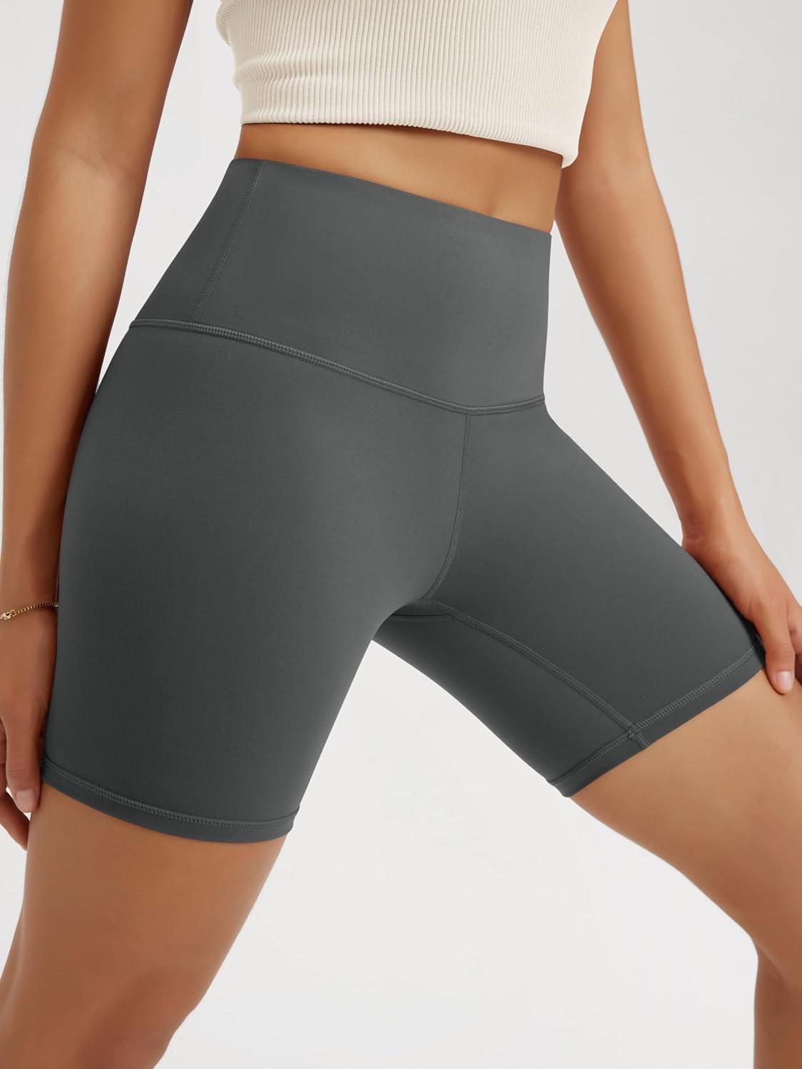 ODODOS High Waist Workout Shorts for Women Tummy Control Workout Gym Athletic Biker Shorts-6"/8" Inseam(Charcoal)