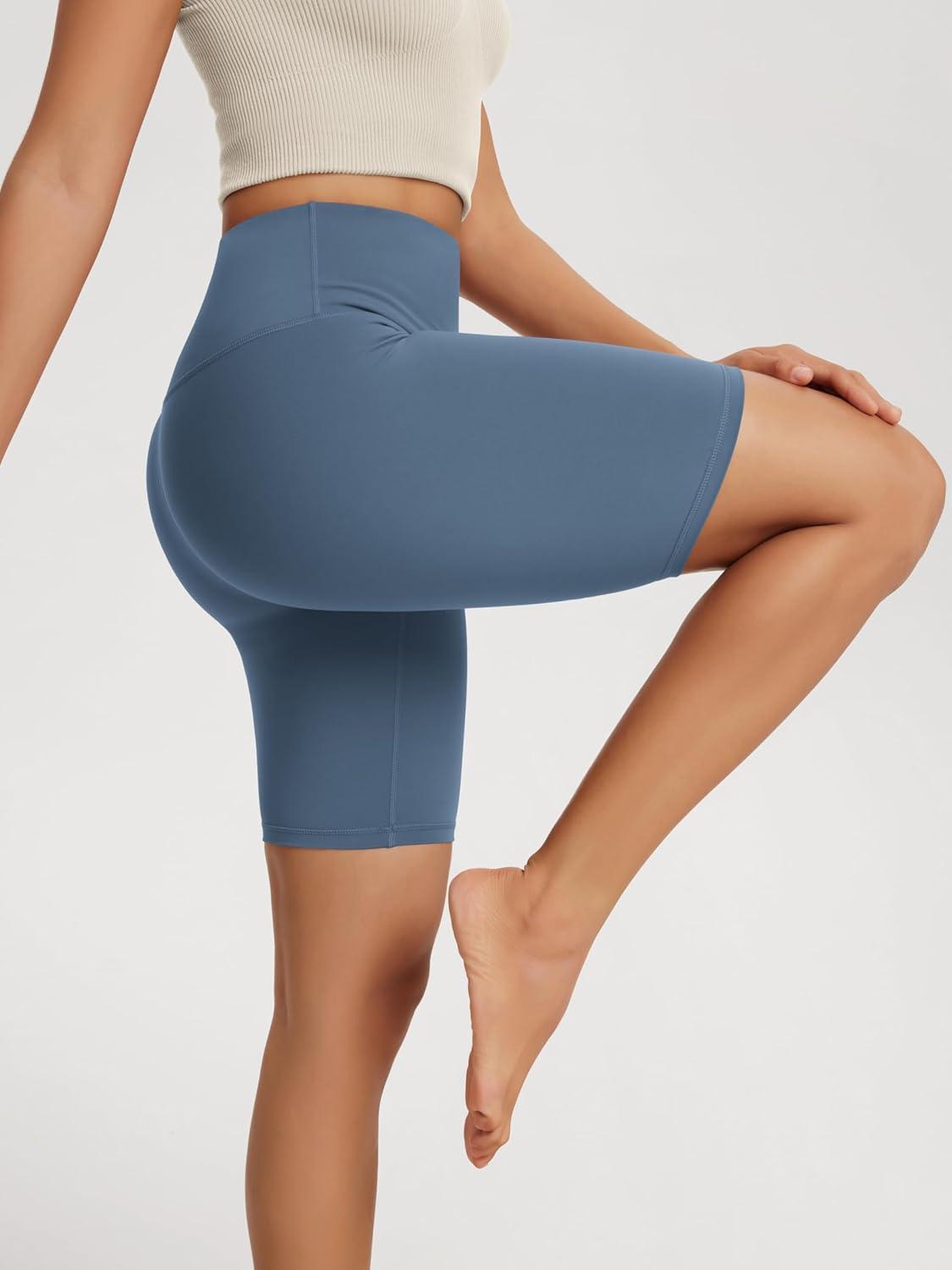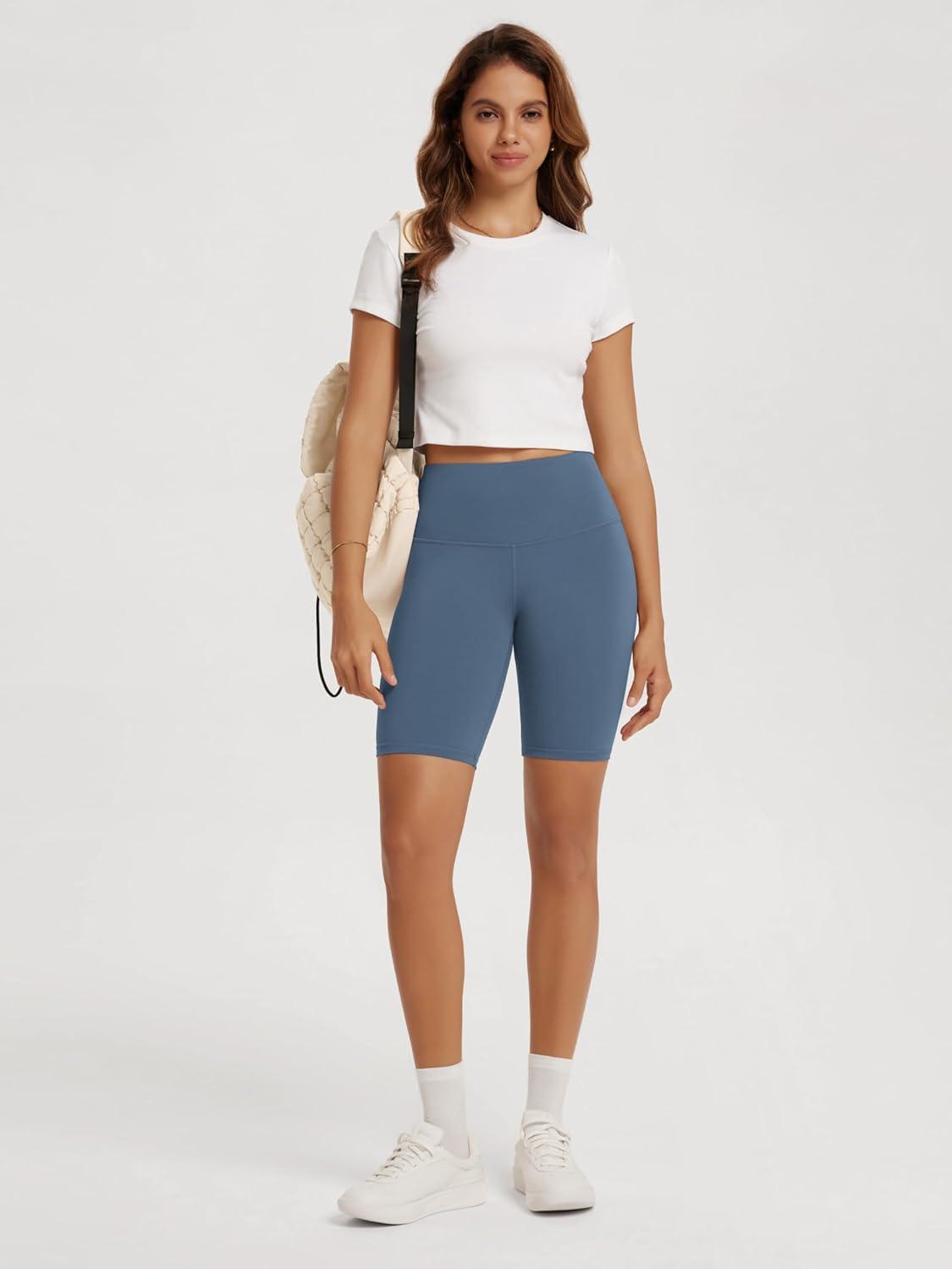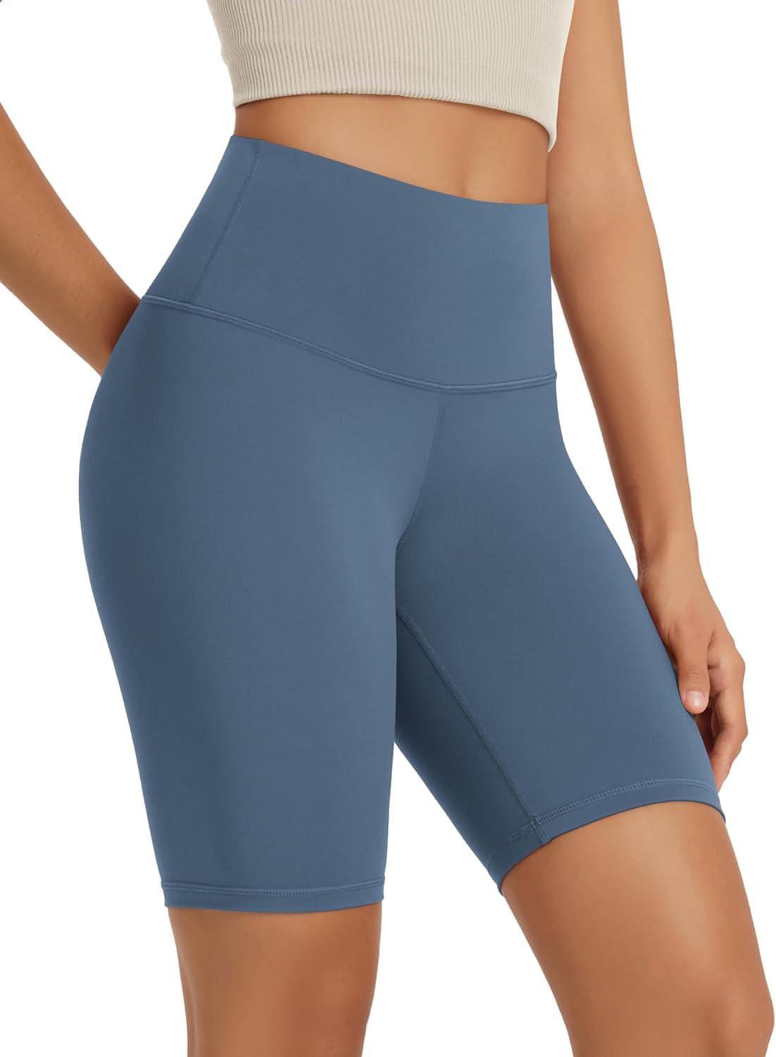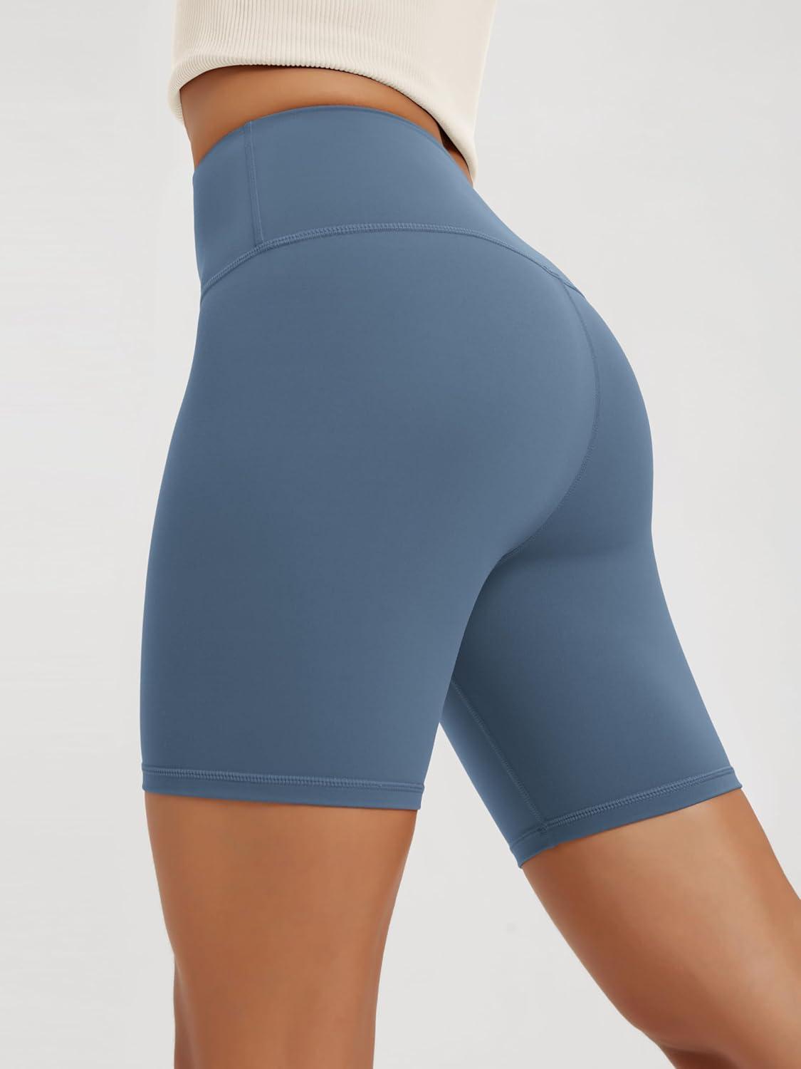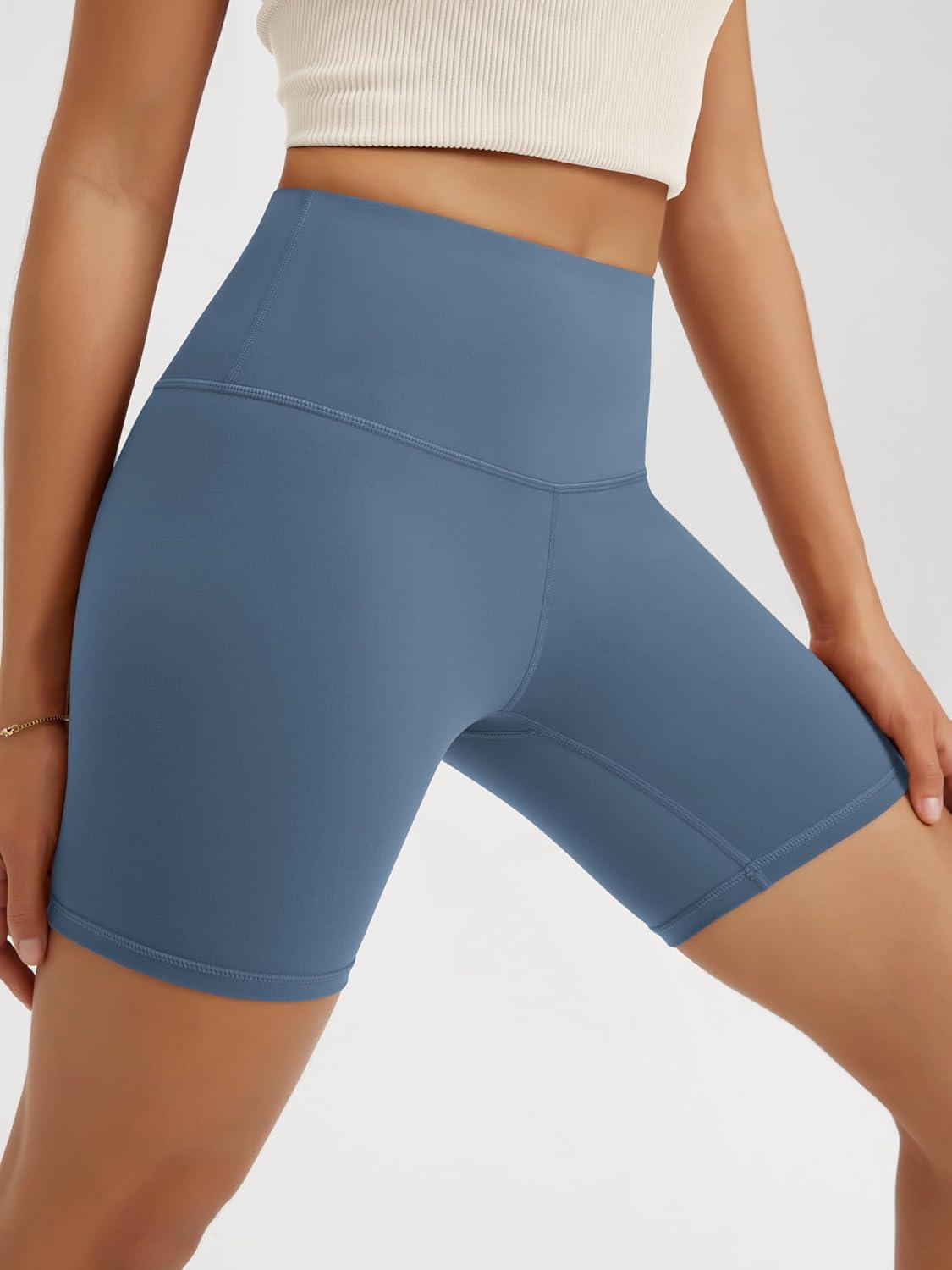 ODODOS High Waist Workout Shorts for Women Tummy Control Workout Gym Athletic Biker Shorts-6″/8″ Inseam(Ink Blue)