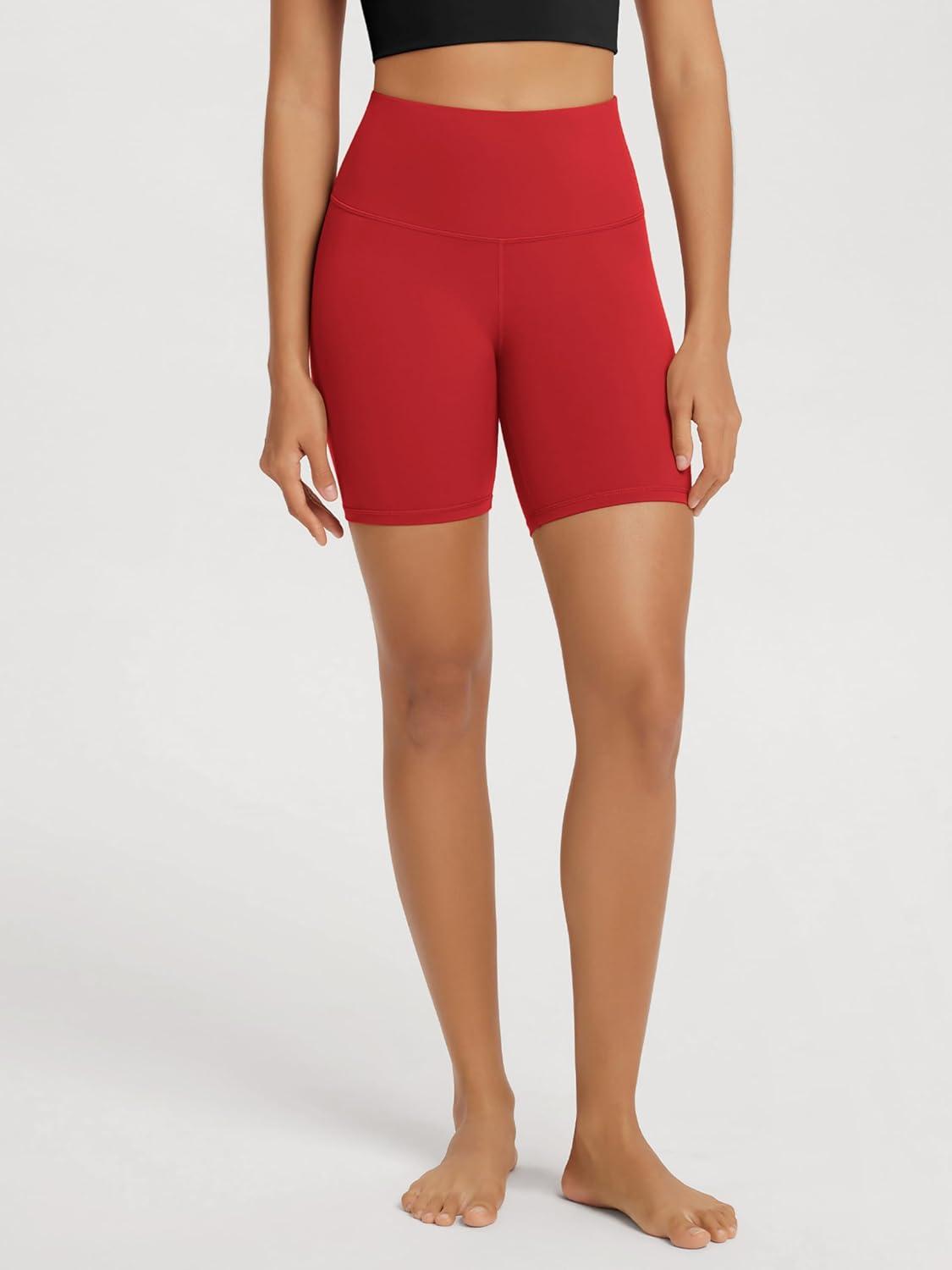 ODODOS High Waist Workout Shorts for Women Tummy Control Workout Gym Athletic Biker Shorts-6"/8" Inseam(Red)