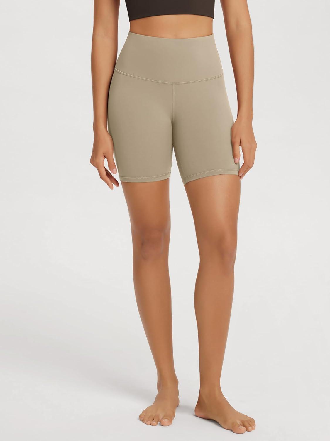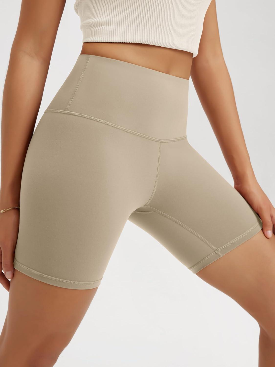 ODODOS High Waist Workout Shorts for Women Tummy Control Workout Gym Athletic Biker Shorts-6"/8" Inseam(Shaker Beige)