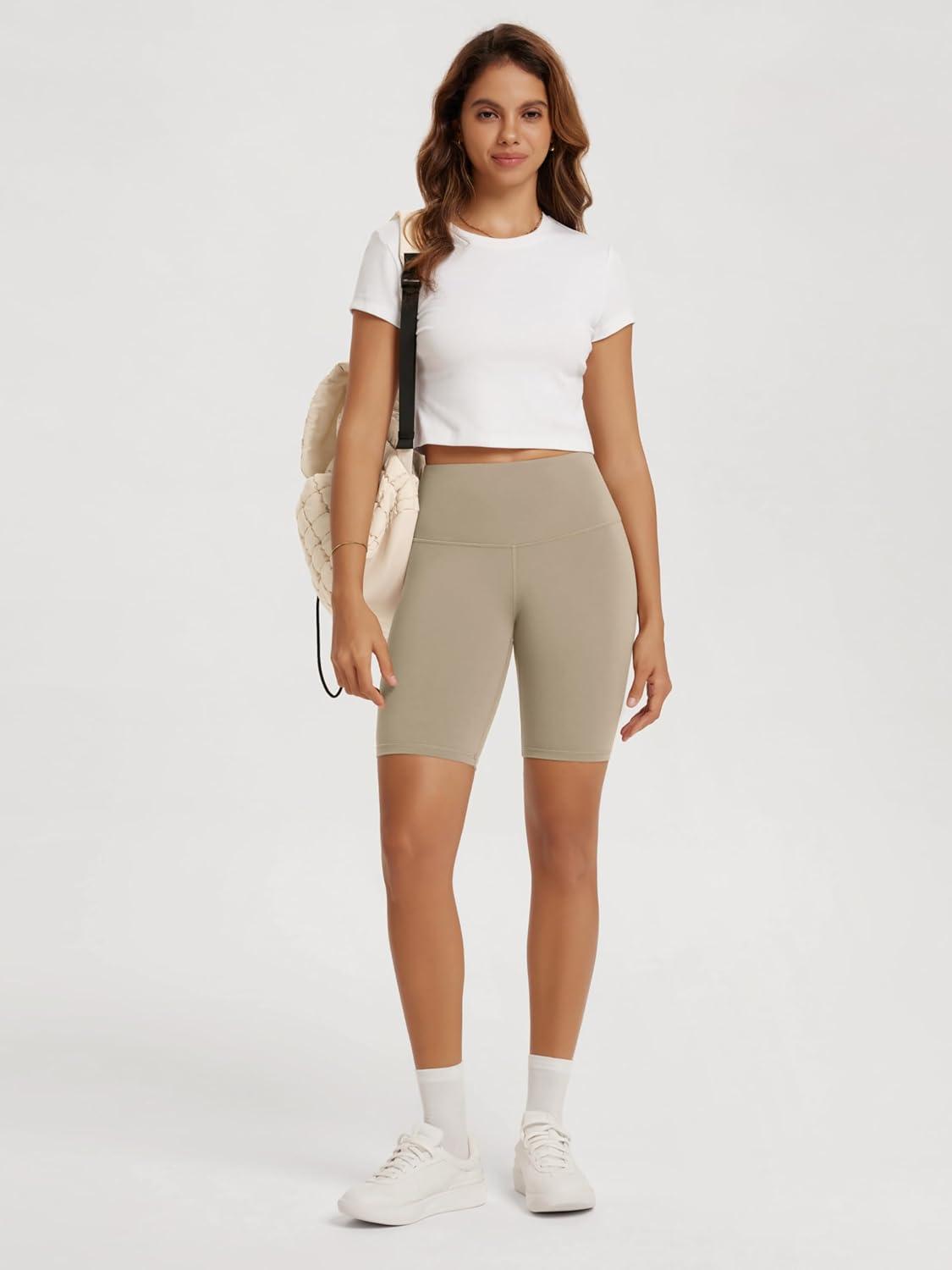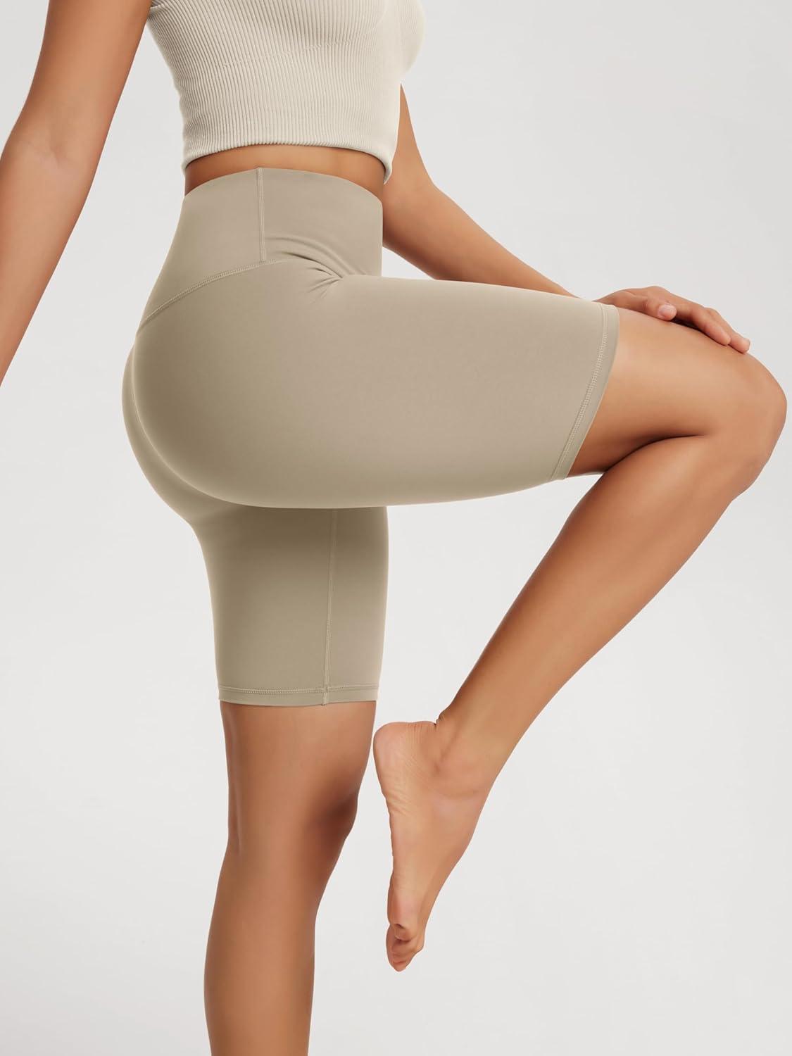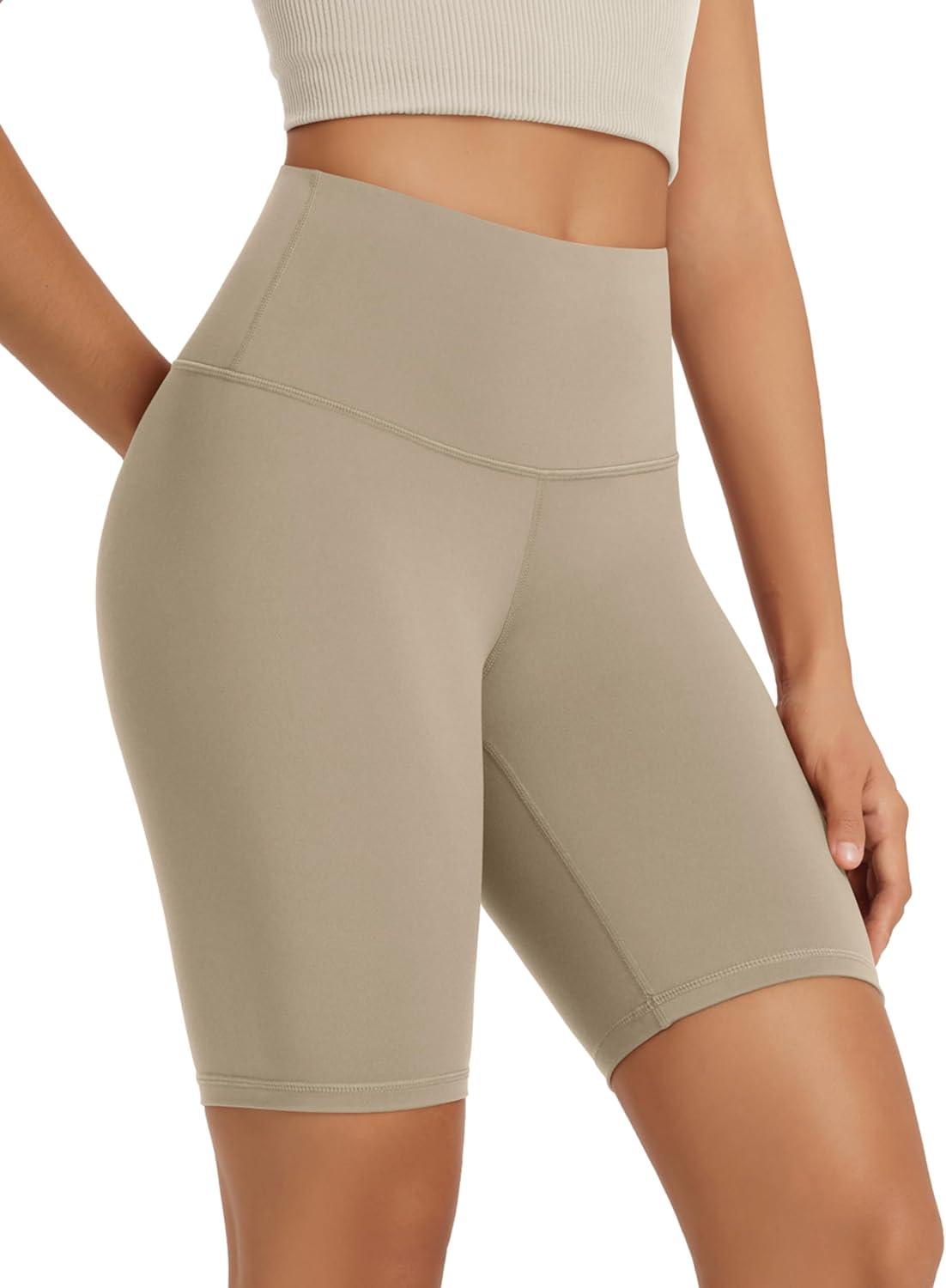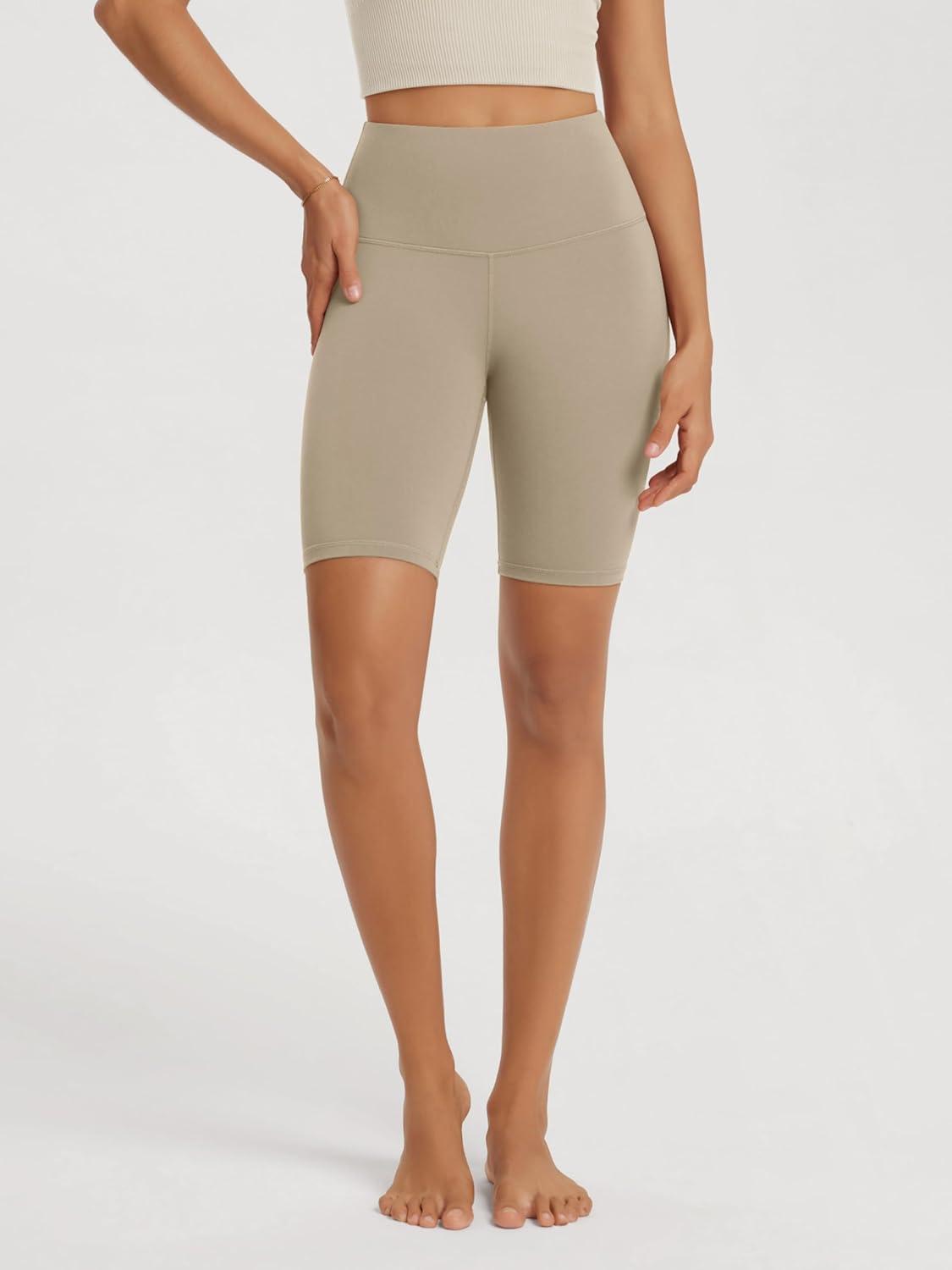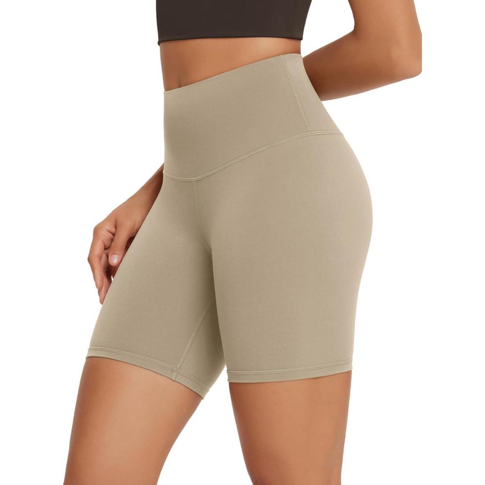 ODODOS High Waist Workout Shorts for Women Tummy Control Workout Gym Athletic Biker Shorts-6″/8″ Inseam(Shaker Beige)