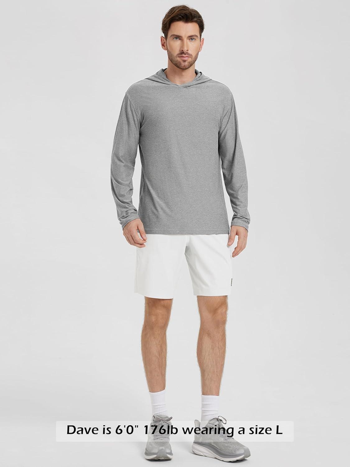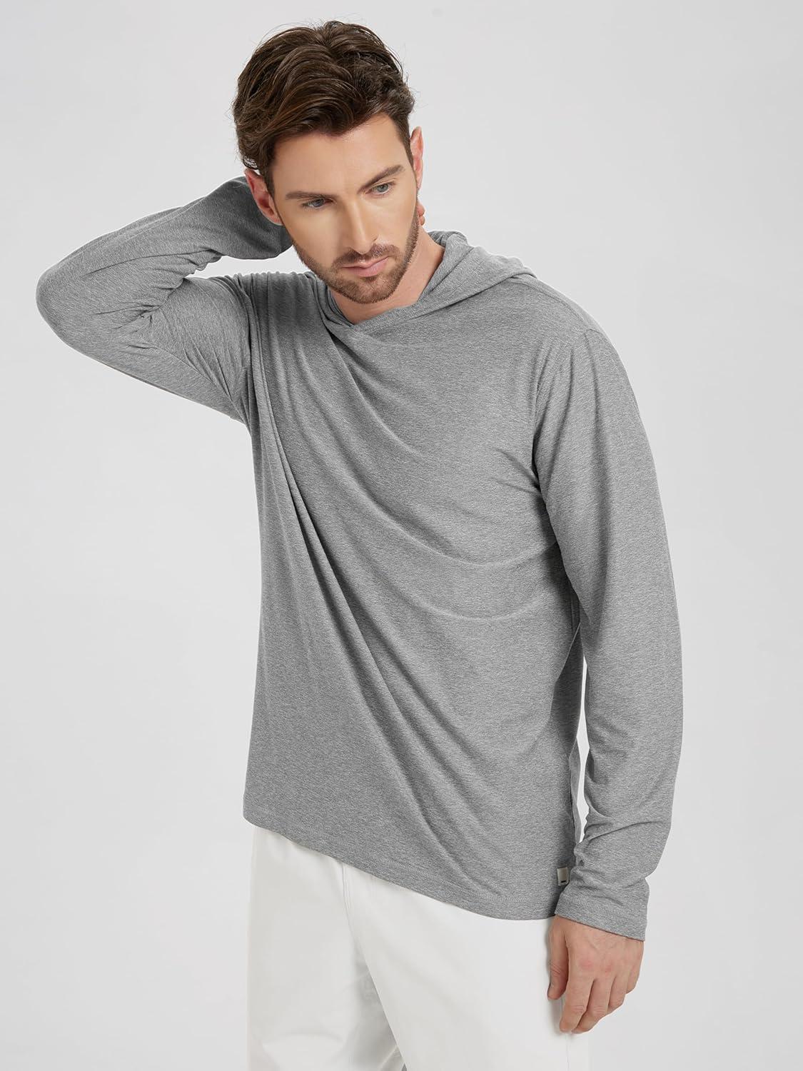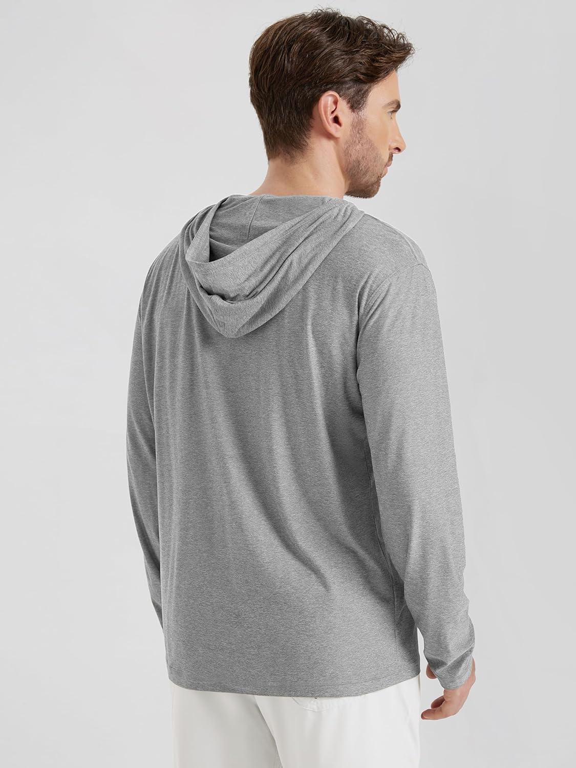 ODODOS Men’s Long Sleeve Hoodie – Stratum Tech Performance Pullover – Ultra Soft Moisture Wicking UPF 50+ Top(Grey Heather)