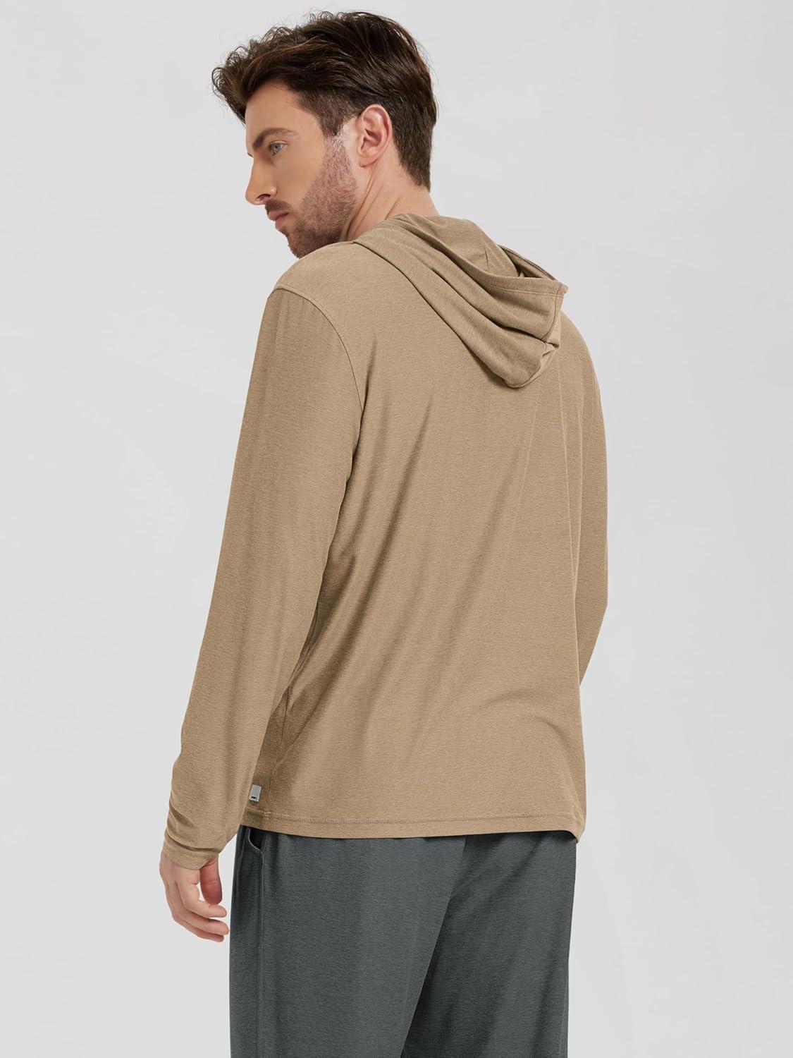ODODOS Men’s Long Sleeve Hoodie – Stratum Tech Performance Pullover – Ultra Soft Moisture Wicking UPF 50+ Top(Java Heather)