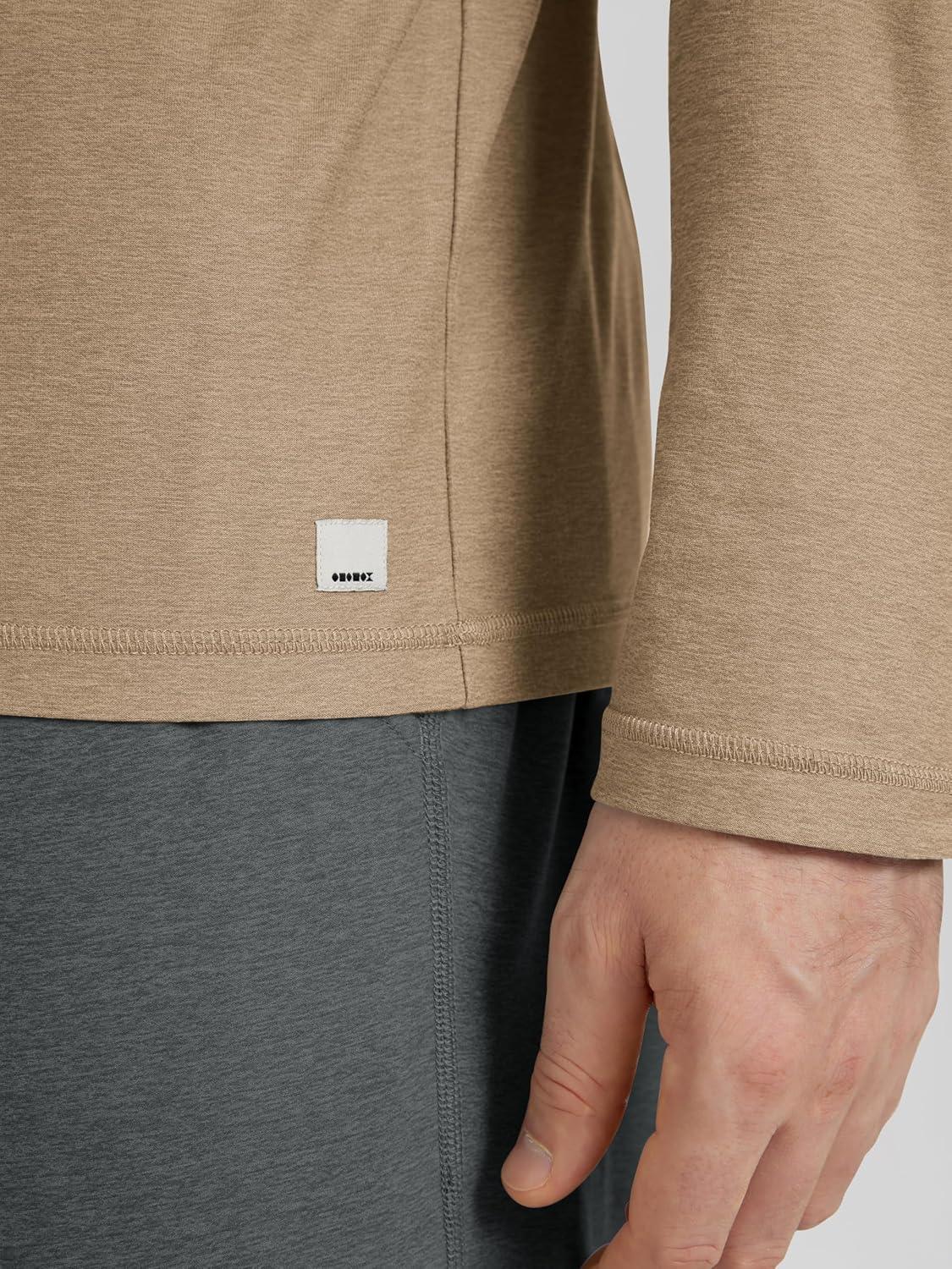 ODODOS Men’s Long Sleeve Hoodie – Stratum Tech Performance Pullover – Ultra Soft Moisture Wicking UPF 50+ Top(Mocha Heather)