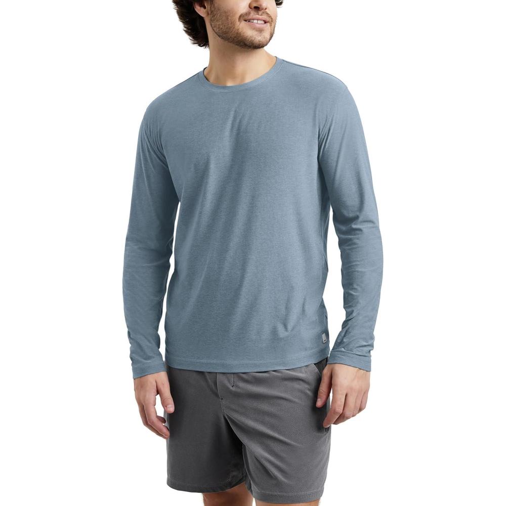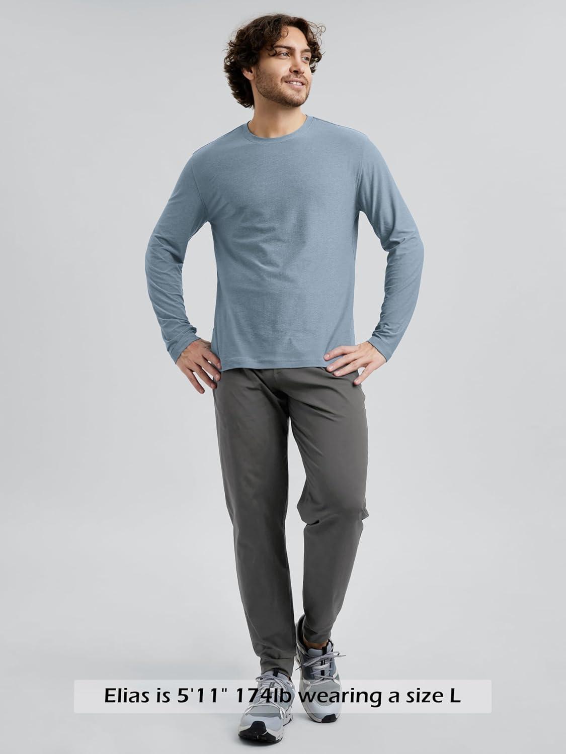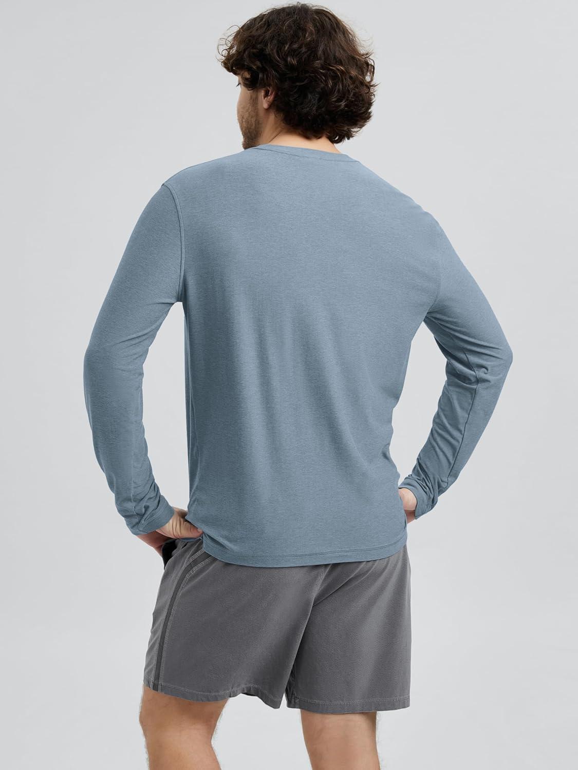 ODODOS Men’s Long Sleeve Performance T-Shirt – Stratum Tech Tee, Ultra Soft Moisture Wicking UPF 50+ – The Ascent Series(Dusty Blue Heather)