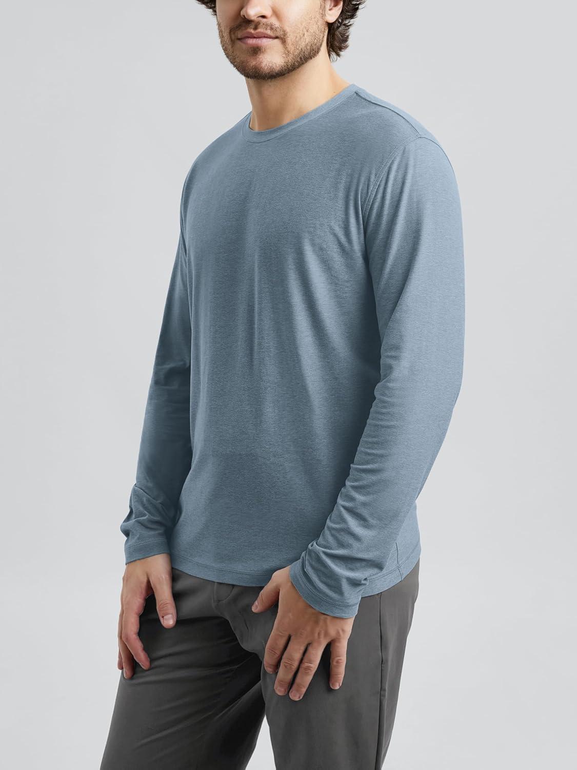ODODOS Men's Long Sleeve Performance T-Shirt - Stratum Tech Tee, Ultra Soft Moisture Wicking UPF 50+ - The Ascent Series(Dusty Blue Heather)