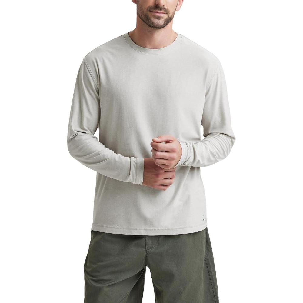 ODODOS Men’s Long Sleeve Performance T-Shirt – Stratum Tech Tee, Ultra Soft Moisture Wicking UPF 50+ – The Ascent Series(Salt Heather)