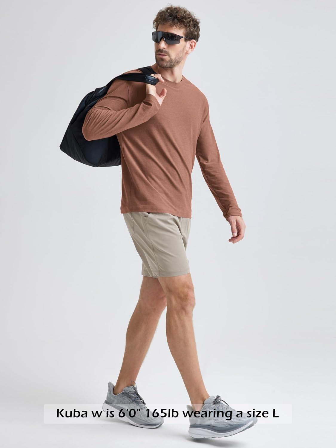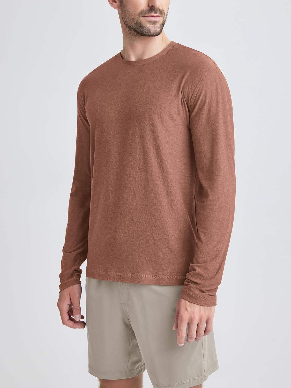 ODODOS Men’s Long Sleeve Performance T-Shirt – Stratum Tech Tee, Ultra Soft Moisture Wicking UPF 50+ – The Ascent Series(Tamarind Heather)