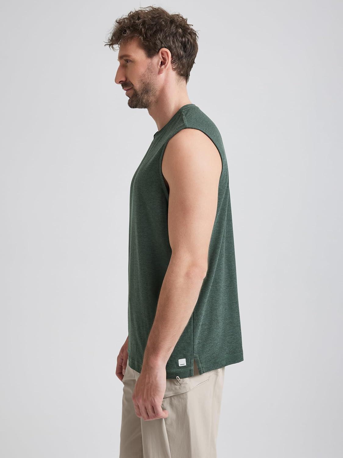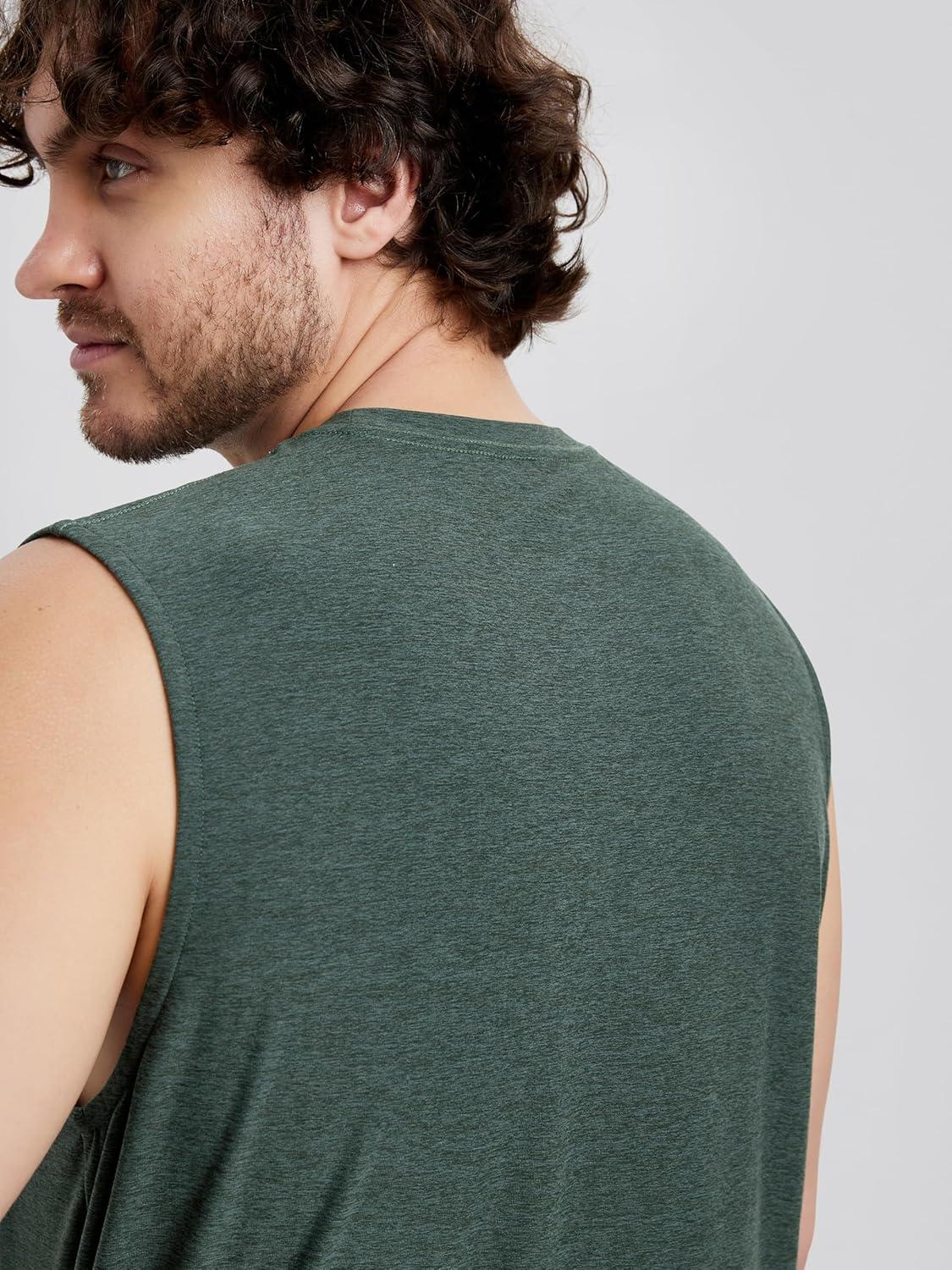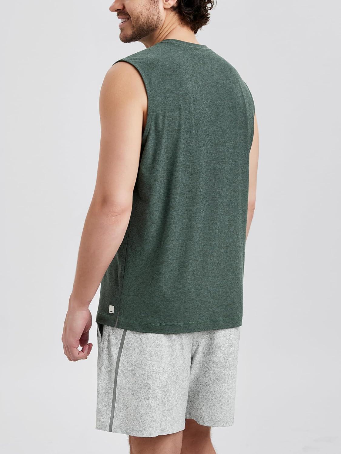 ODODOS Men's Muscle Tee - Stratum Tech Performance Tank, Ultra Soft Moisture Wicking UPF 50+ Sleeveless Shirts(Aspen Heather)