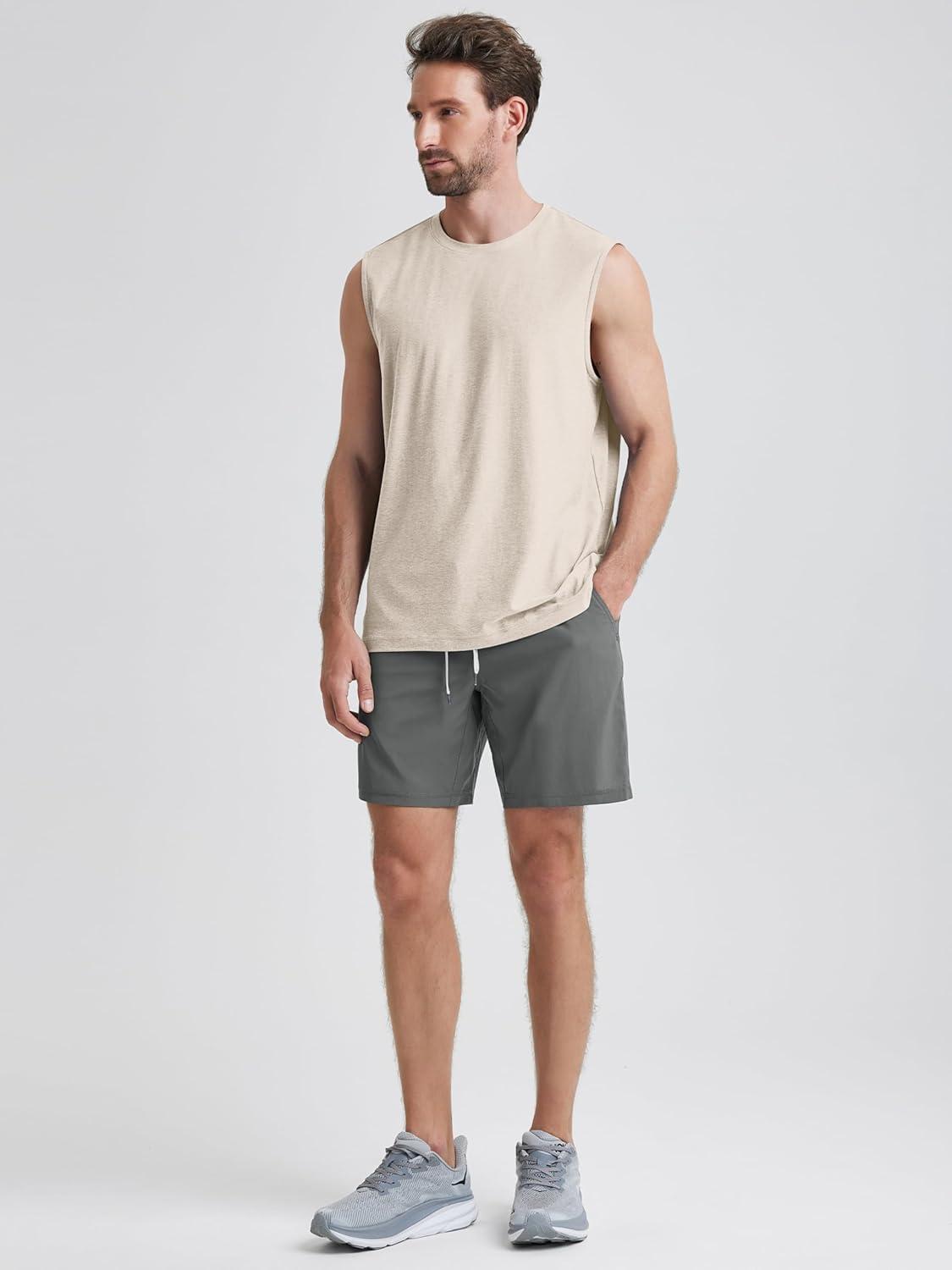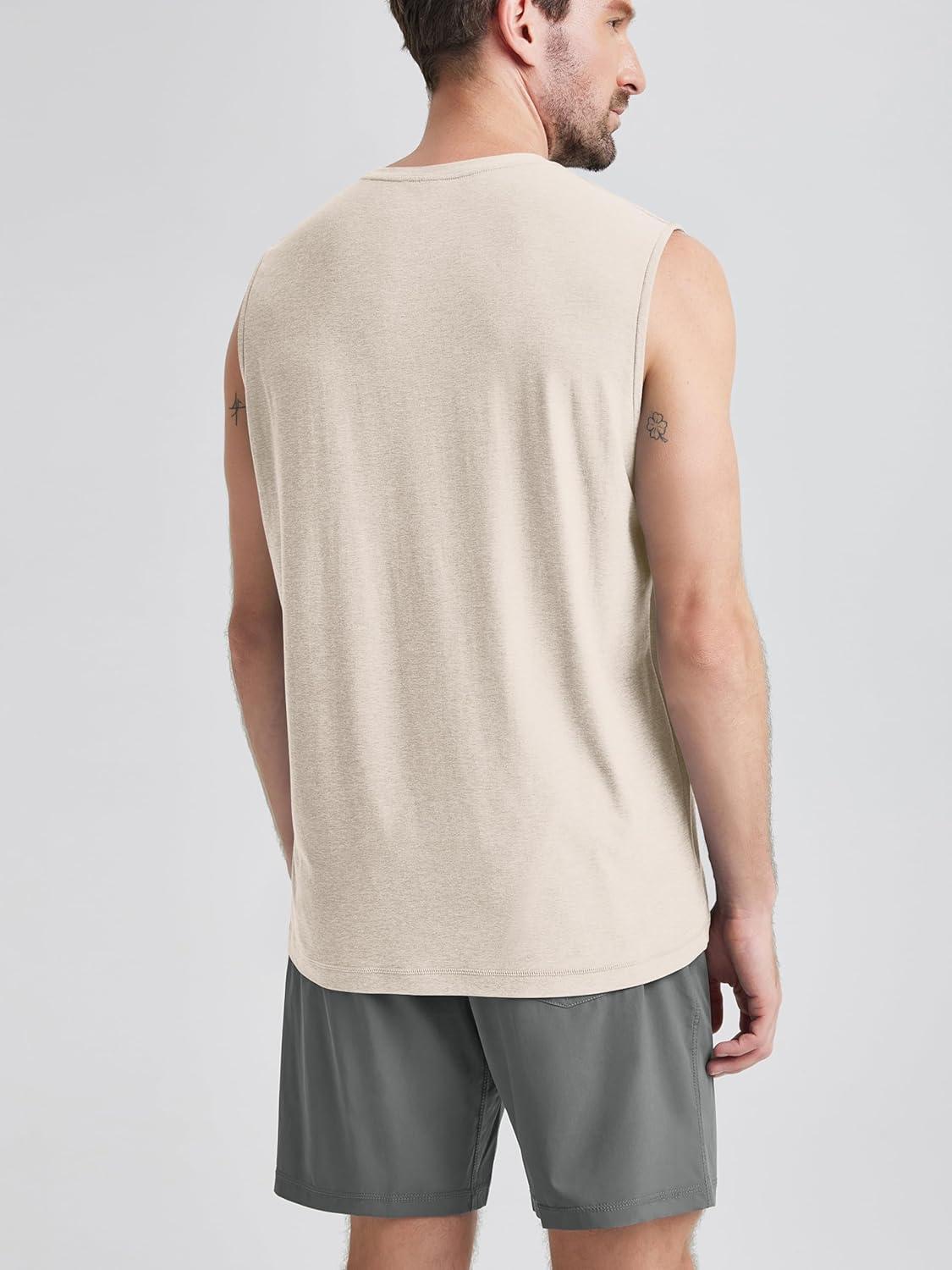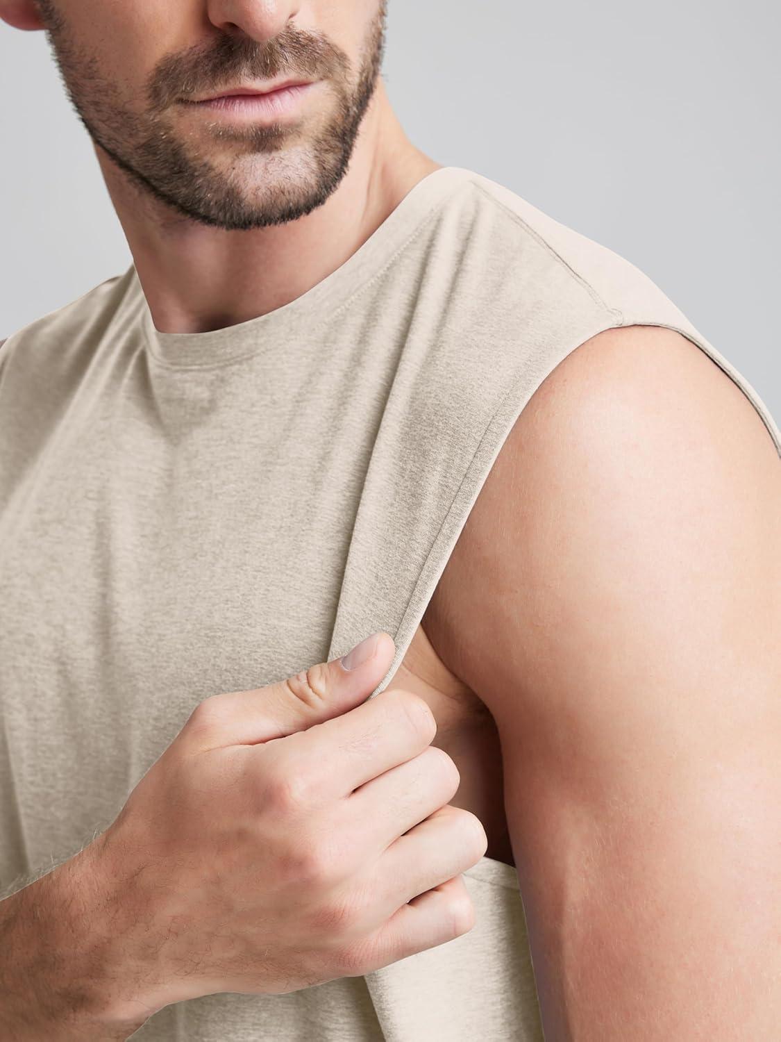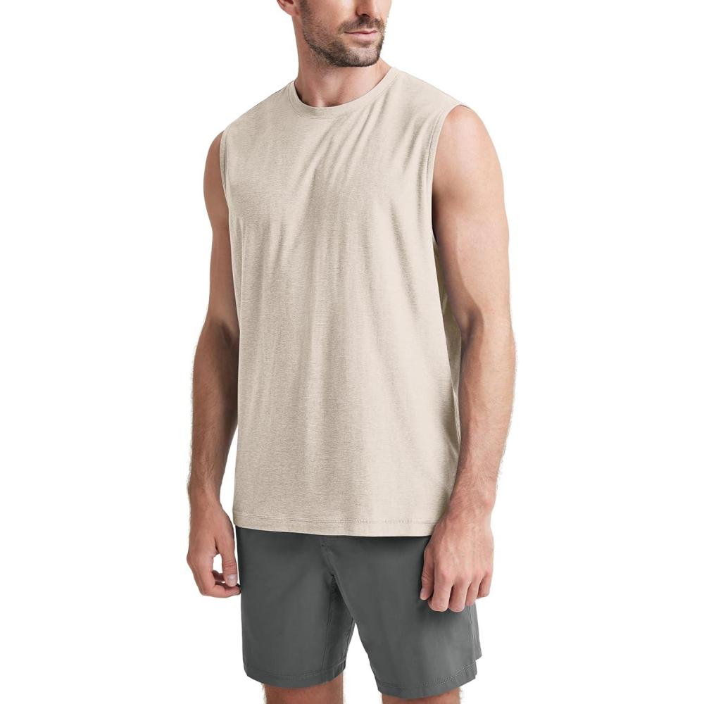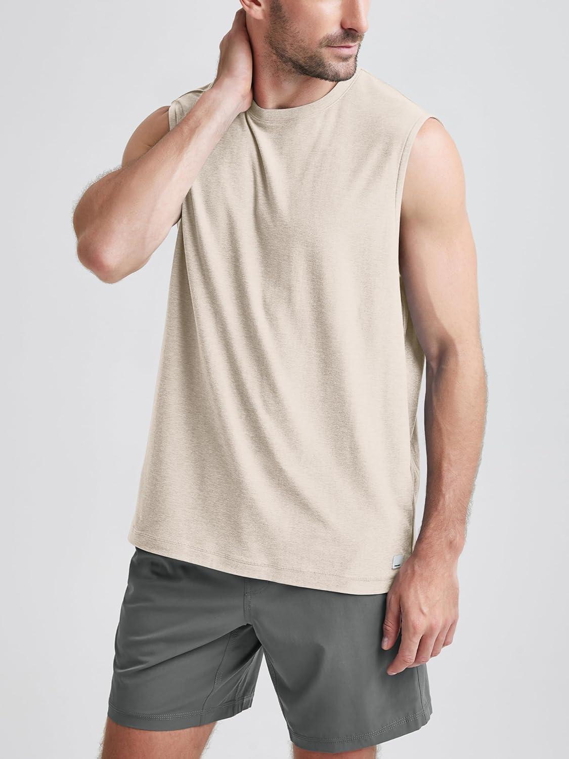 ODODOS Men’s Muscle Tee – Stratum Tech Performance Tank, Ultra Soft Moisture Wicking UPF 50+ Sleeveless Shirts(Ecru Heather)