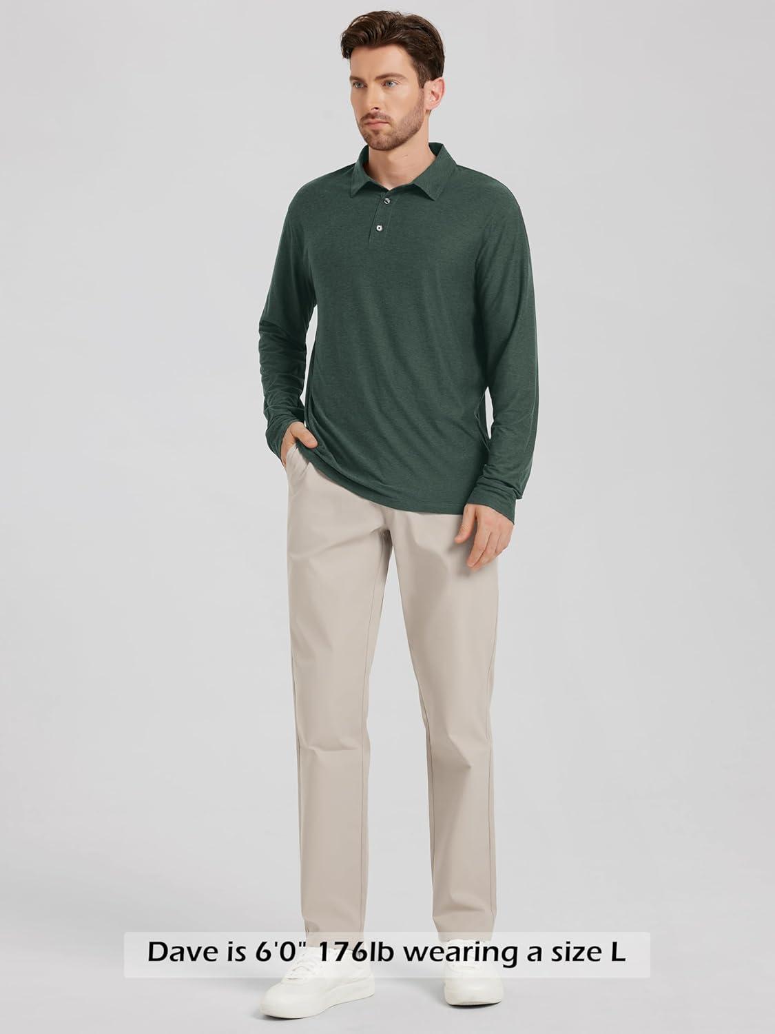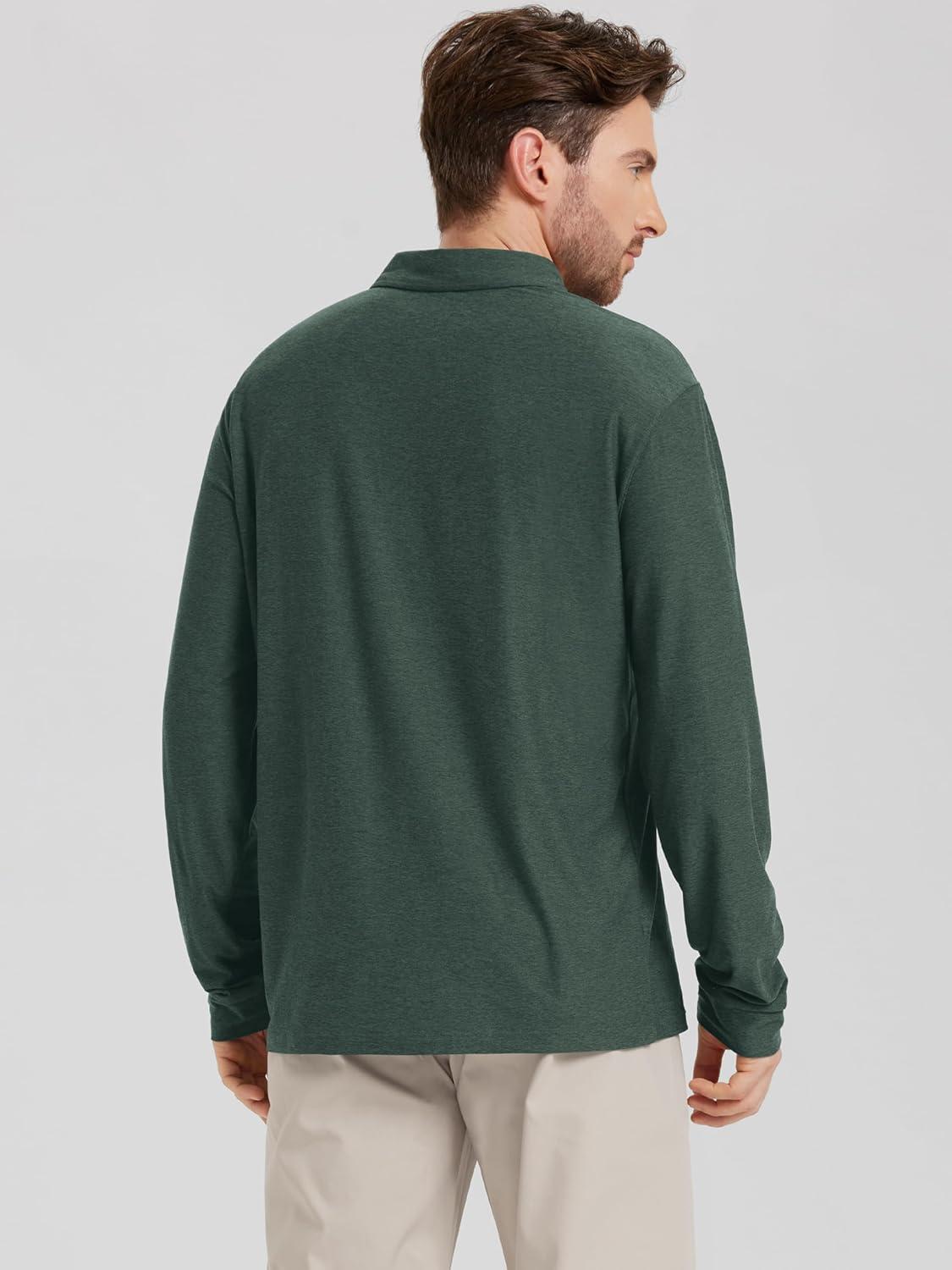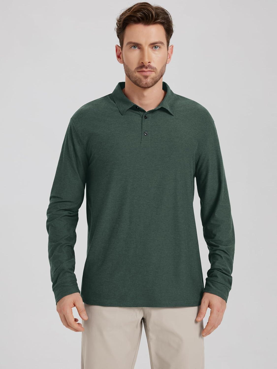 ODODOS Men's Performance Long Sleeve Polo- Stratum Tech Golf T-Shirts Ultra Soft Moisture Wicking UPF 50+ Casual Tops(Aspen Heather)