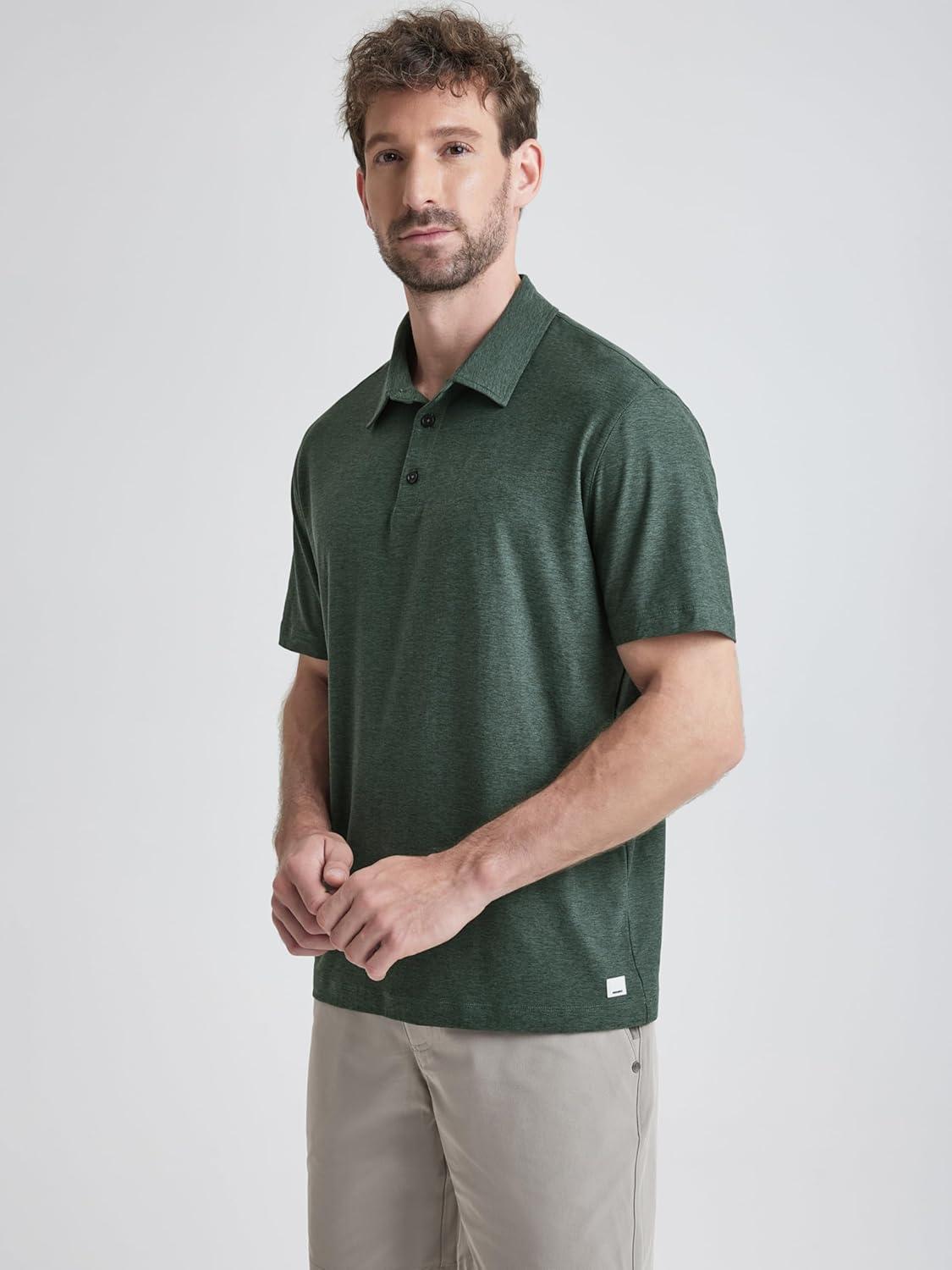 ODODOS Men’s Performance Polo – Stratum Tech Short Sleeve Golf T-Shirts Ultra Soft Moisture Wicking UPF 50+ Casual Tops(Aspen Heather)