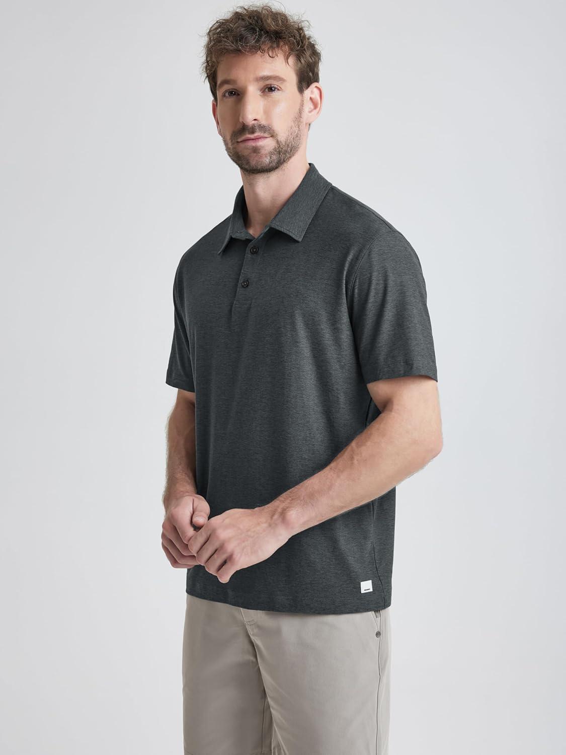 ODODOS Men's Performance Polo - Stratum Tech Short Sleeve Golf T-Shirts Ultra Soft Moisture Wicking UPF 50+ Casual Tops(Charcoal Heather)