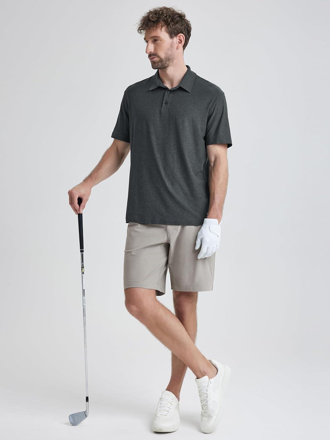 ODODOS Men’s Performance Polo – Stratum Tech Short Sleeve Golf T-Shirts Ultra Soft Moisture Wicking UPF 50+ Casual Tops(Charcoal Heather)
