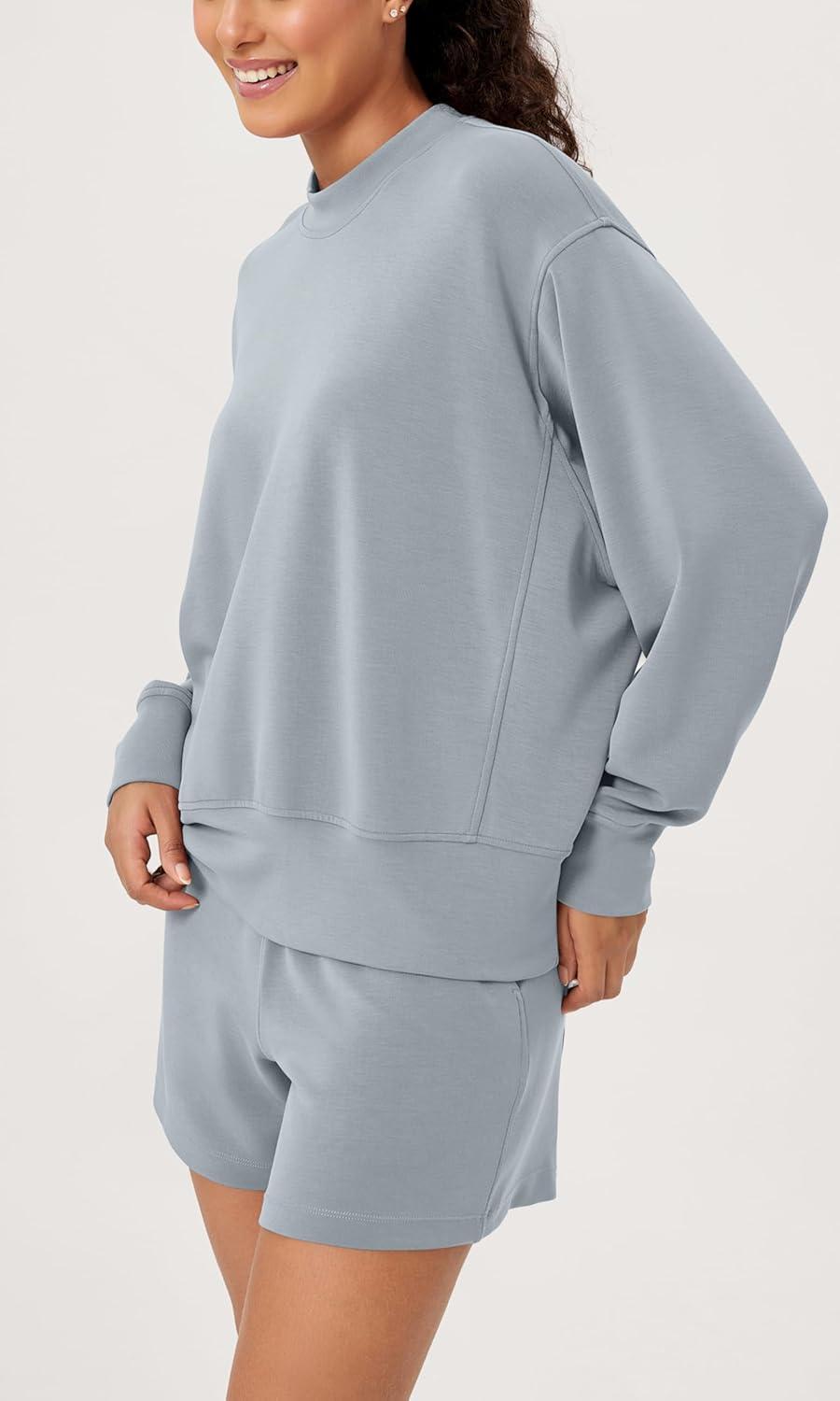 ODODOS Modal Soft Long Sleeve Oversized Sweatshirts for Women High Crew Neck Relaxed Pullover Tops(Grey Blue)