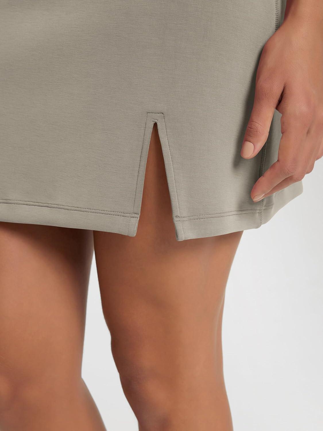 imageODODOS Modal Soft Mini Skirt for Women Side Slit High Waist ALine Casual Daily SkirtsKhaki