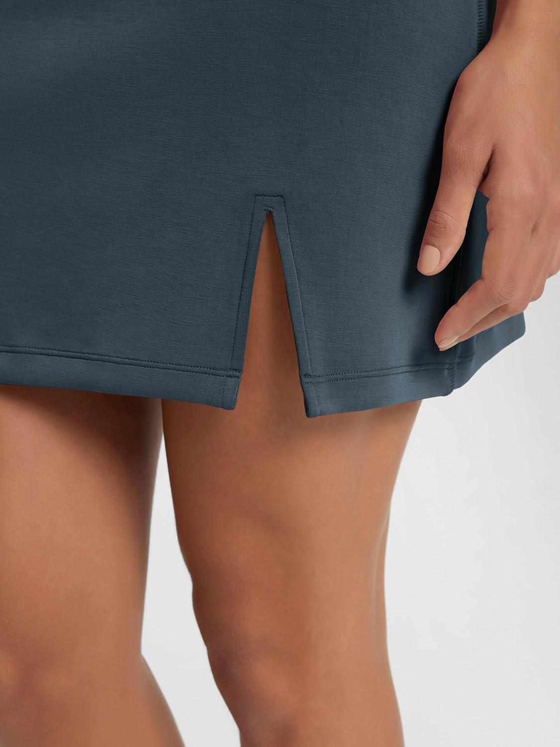 imageODODOS Modal Soft Mini Skirt for Women Side Slit High Waist ALine Casual Daily SkirtsNavy