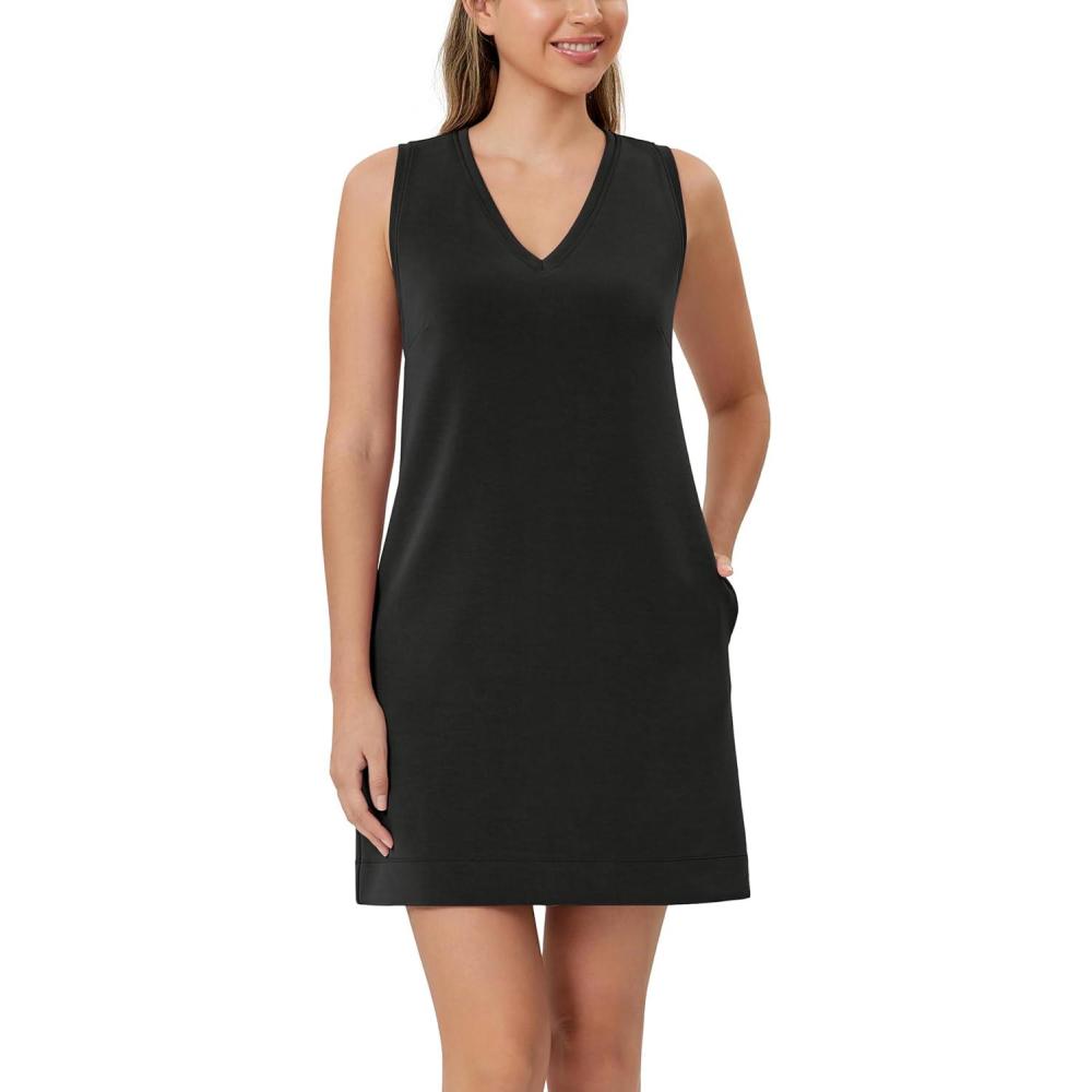 imageODODOS Modal Soft VNeck Tank Dress for Women Sleeveless Sundress Casual Relaxed Summer Dress with PocketBlack