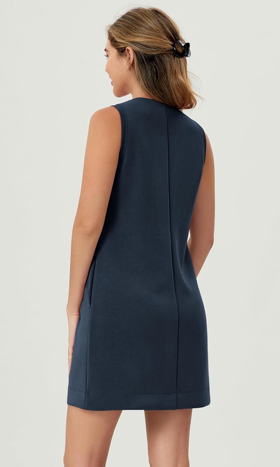 ODODOS Modal Soft V-Neck Tank Dress for Women Sleeveless Sundress Casual Relaxed Summer Dress with Pocket(Deep Blue)