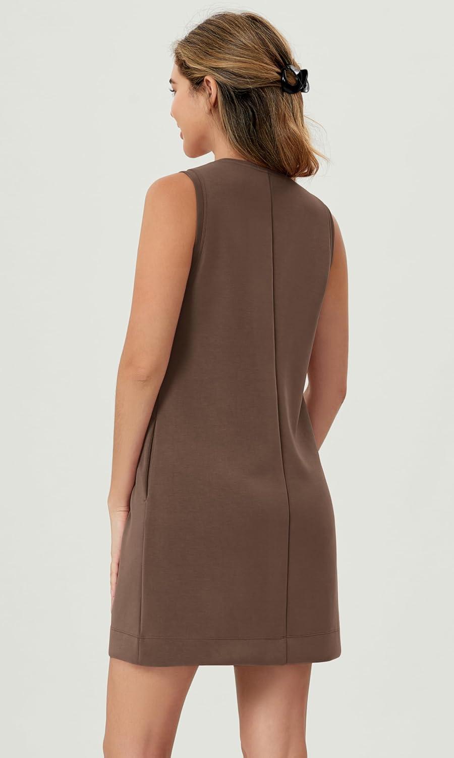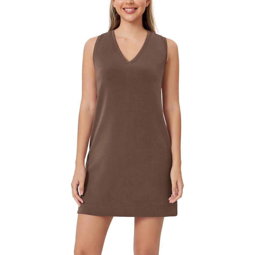 imageODODOS Modal Soft VNeck Tank Dress for Women Sleeveless Sundress Casual Relaxed Summer Dress with PocketNutria