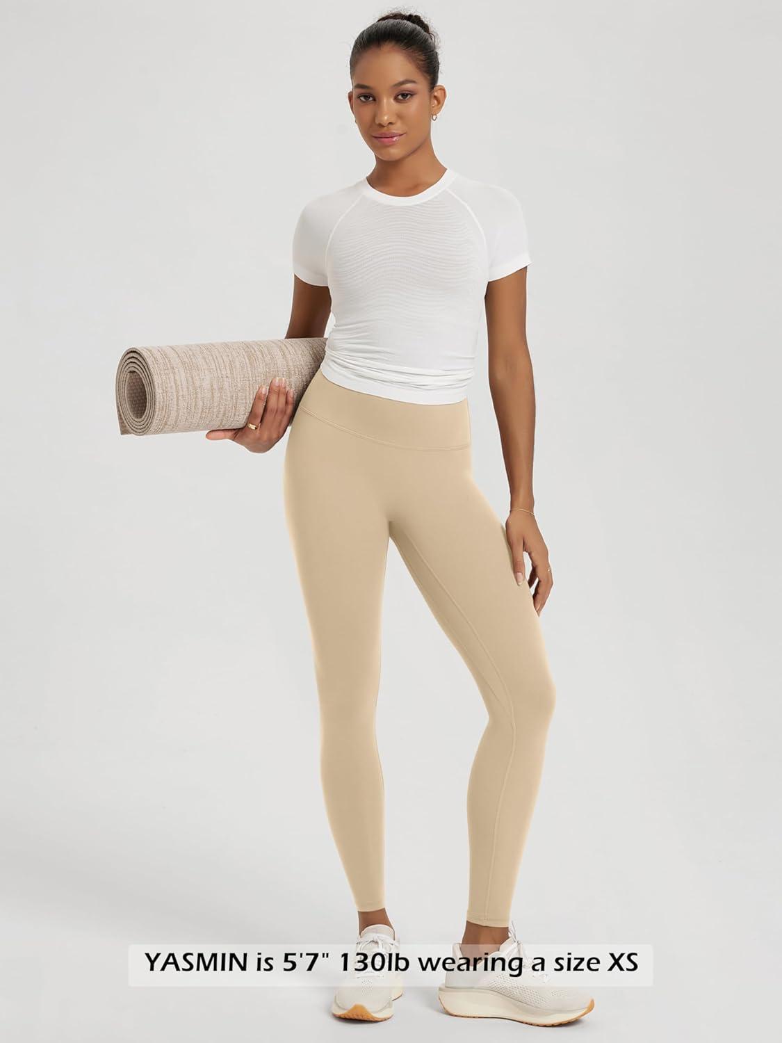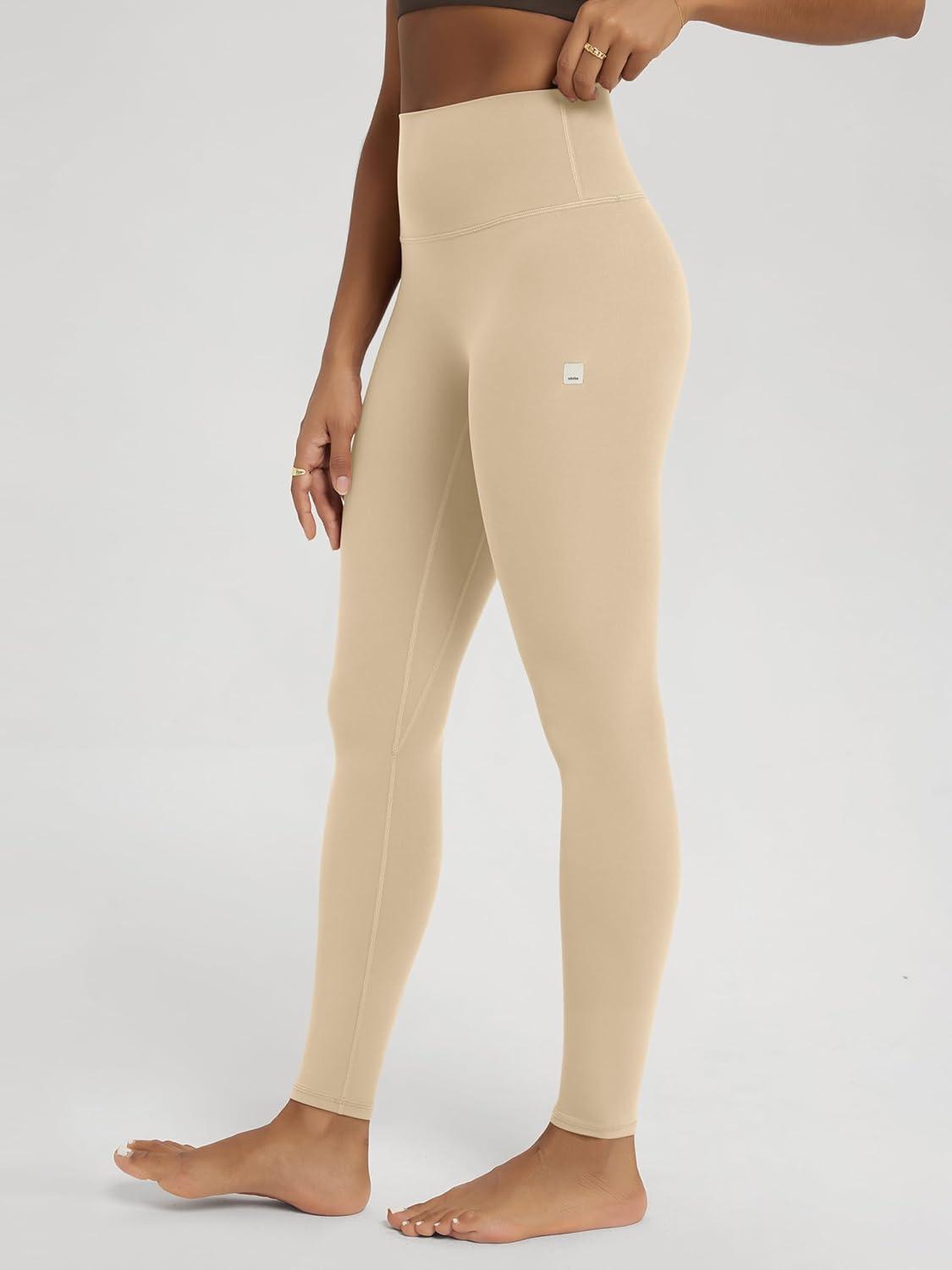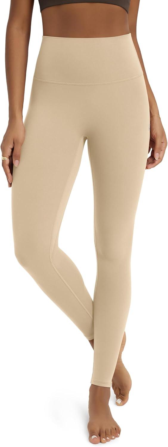 ODODOS No Front Seam Yoga Leggings for Women – 25″ / 28″ High Waist Buttery Soft Lounge Yoga Pants(Beige)