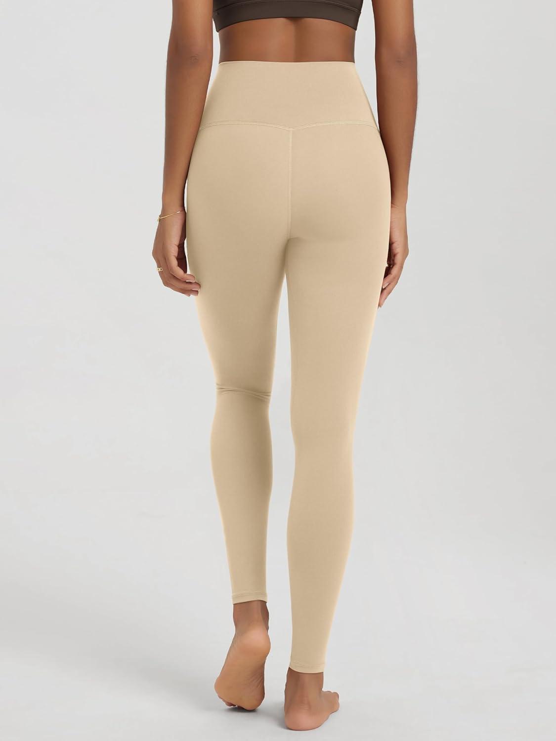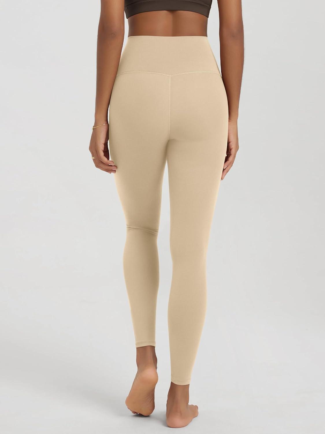 ODODOS No Front Seam Yoga Leggings for Women - 25" / 28" High Waist Buttery Soft Lounge Yoga Pants(Beige)