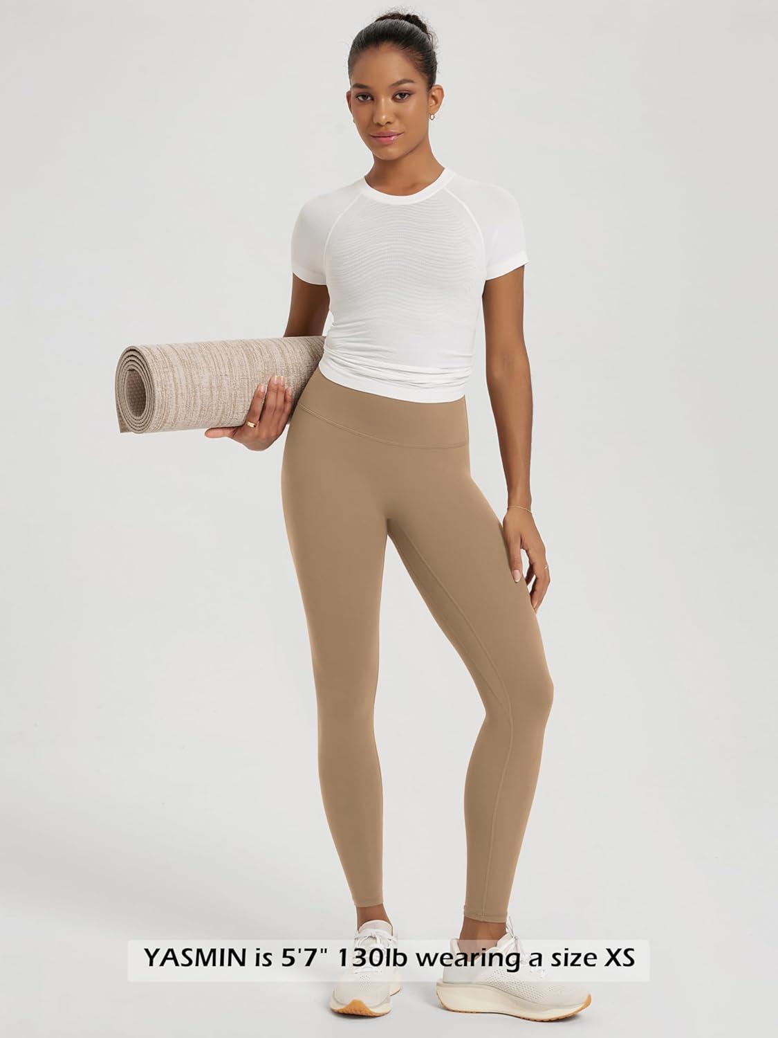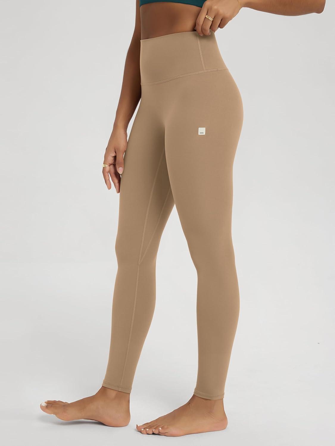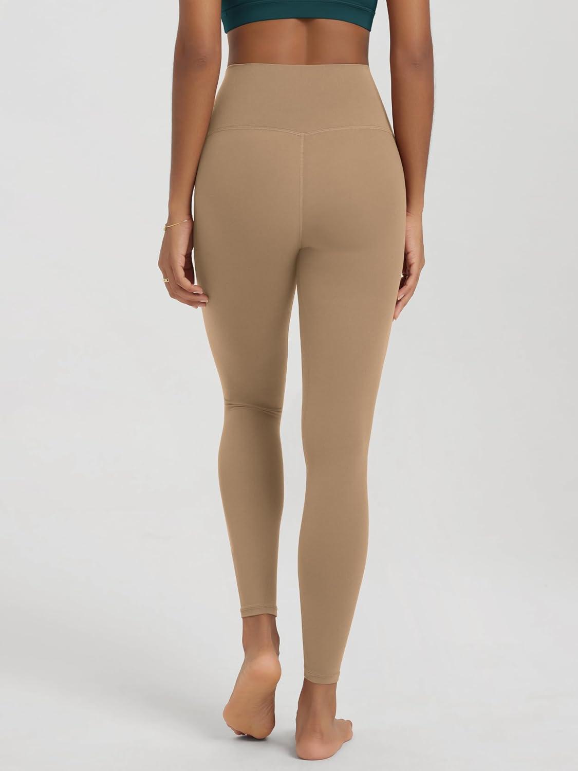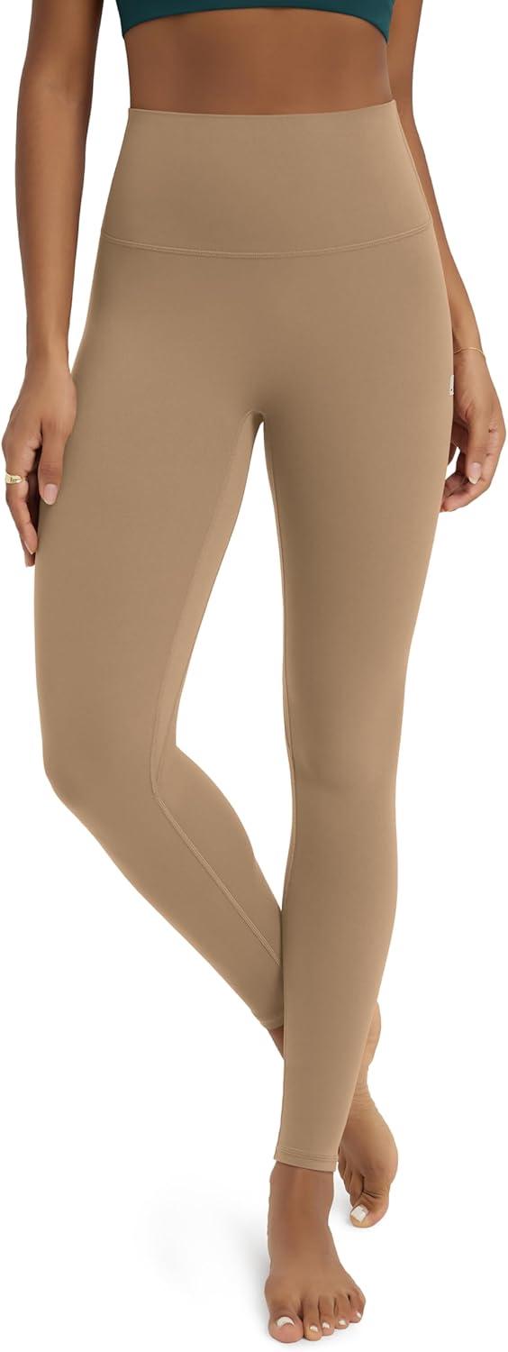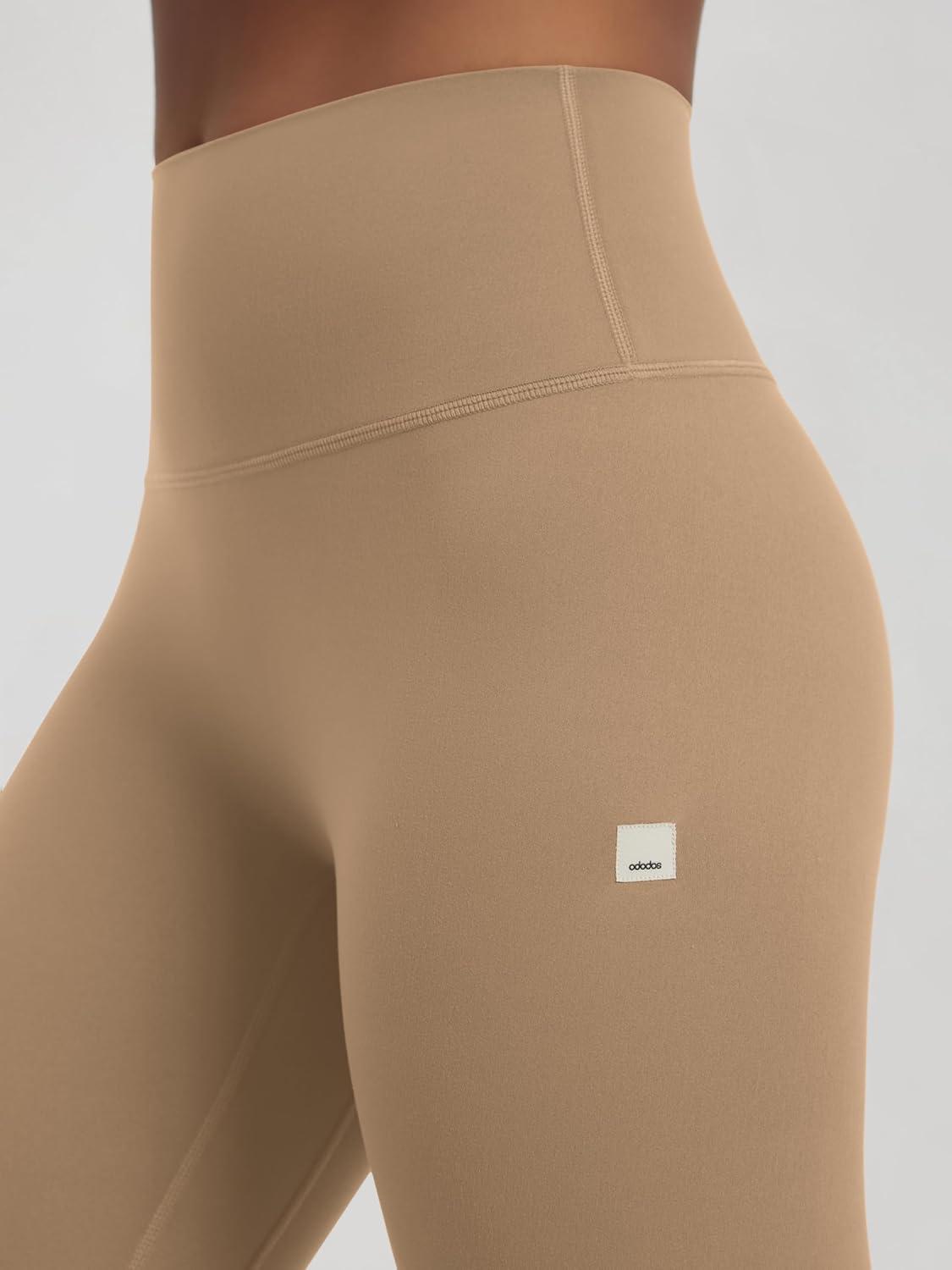 ODODOS No Front Seam Yoga Leggings for Women – 25″ / 28″ High Waist Buttery Soft Lounge Yoga Pants(Light Brown)