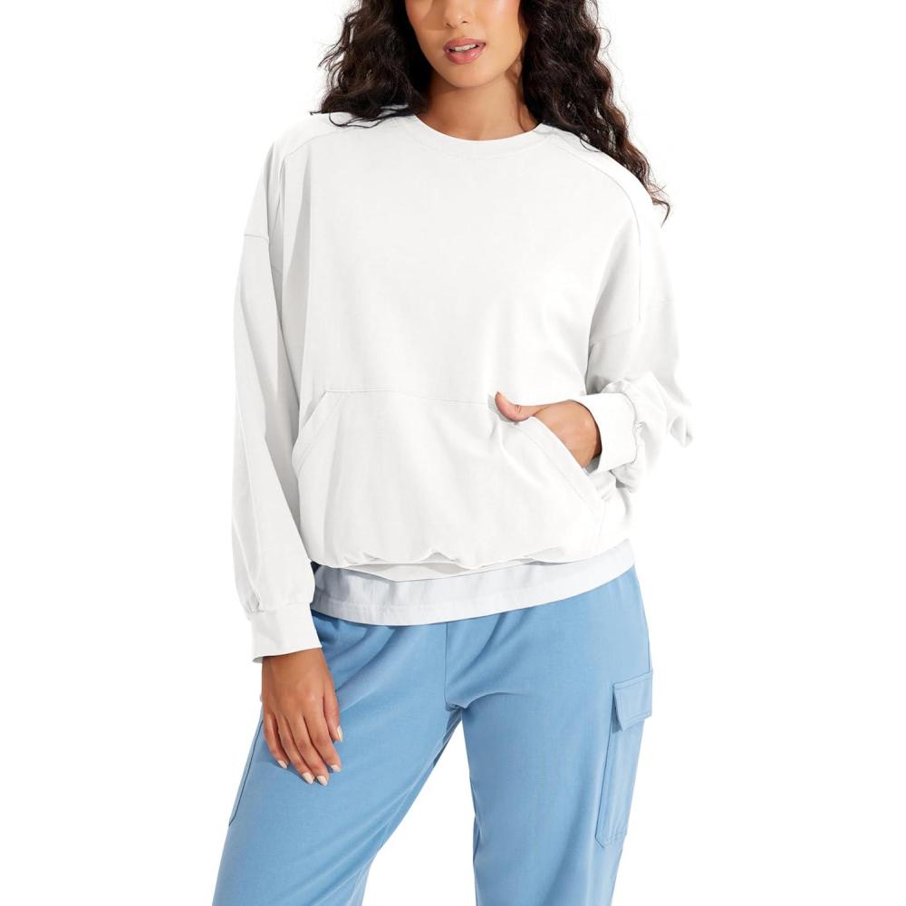 imageODODOS Purevibe Cotton Oversized Sweatshirts Womens Crew Neck Long Sleeve Pullover Tops with Kangaroo PocketWhite