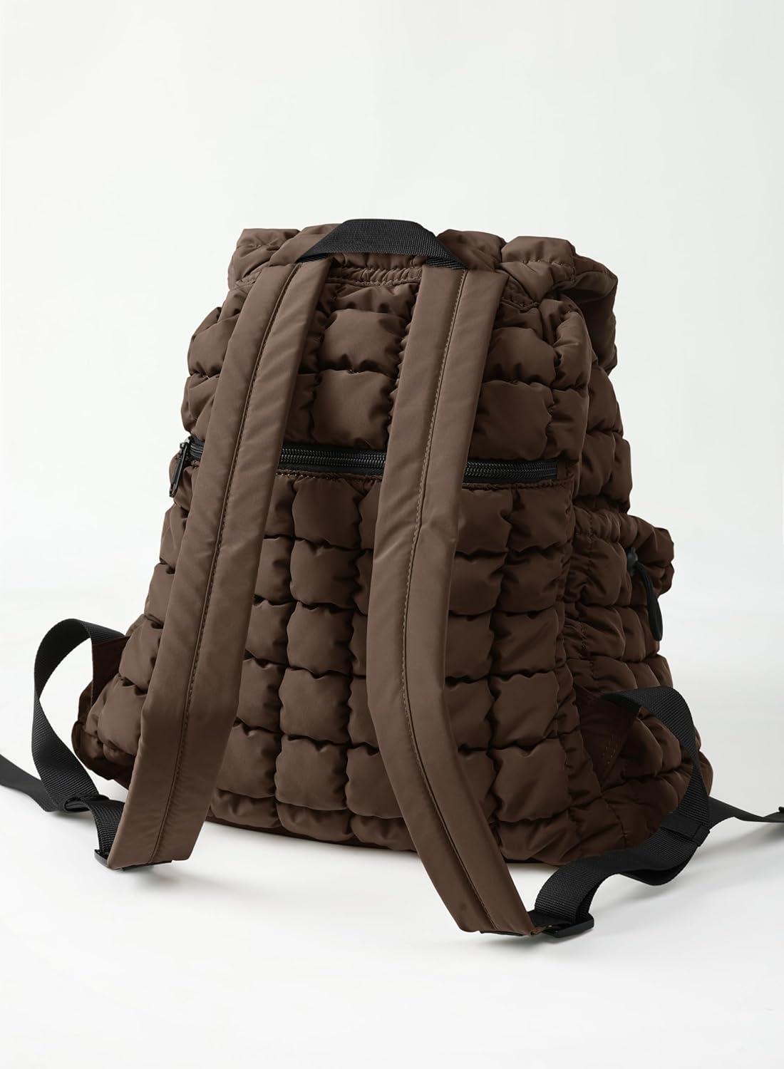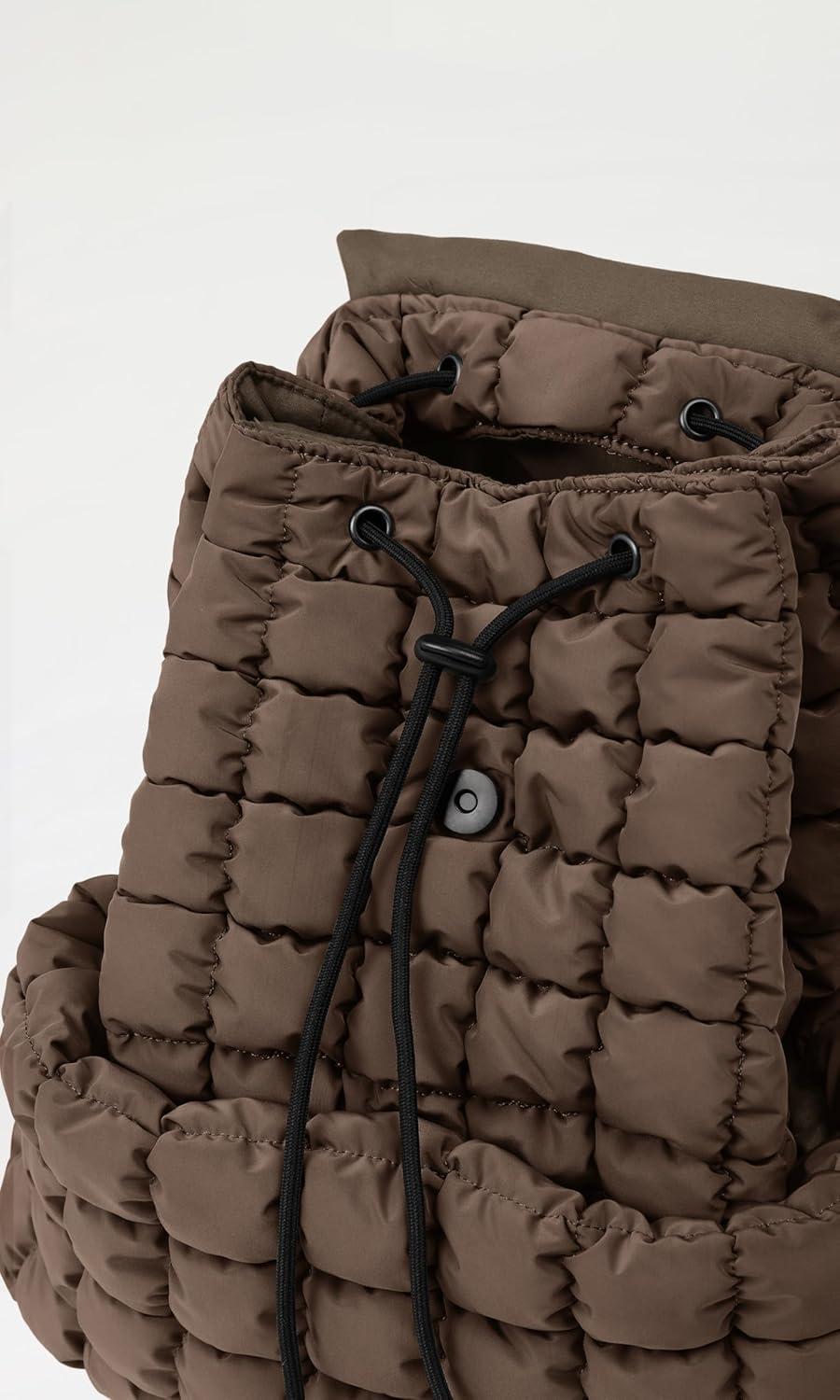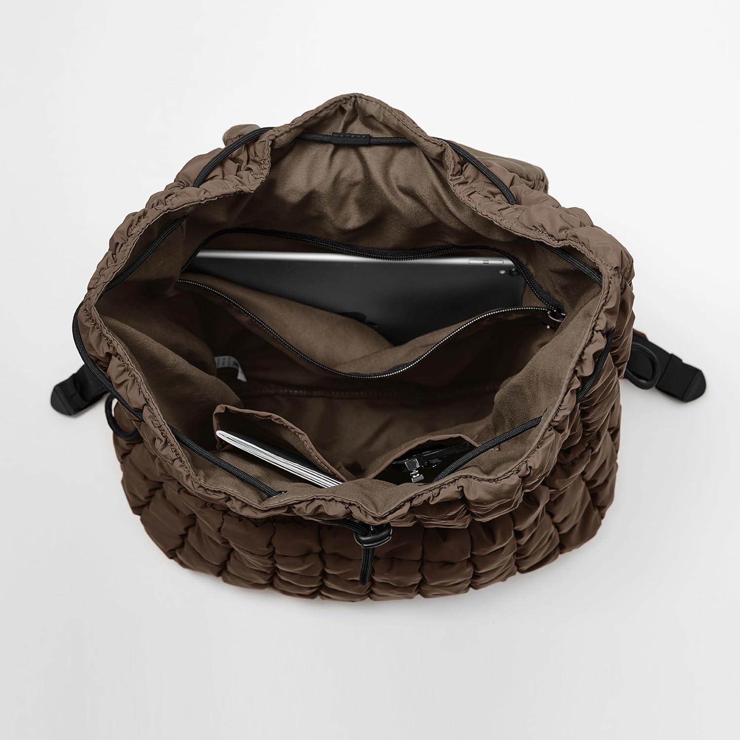 ODODOS Quilted Backpack 2.0 for Women Lightweight Puffer Hiker Pack Drawstring Padding Travel Gym Bag, Black(Dark Brown)