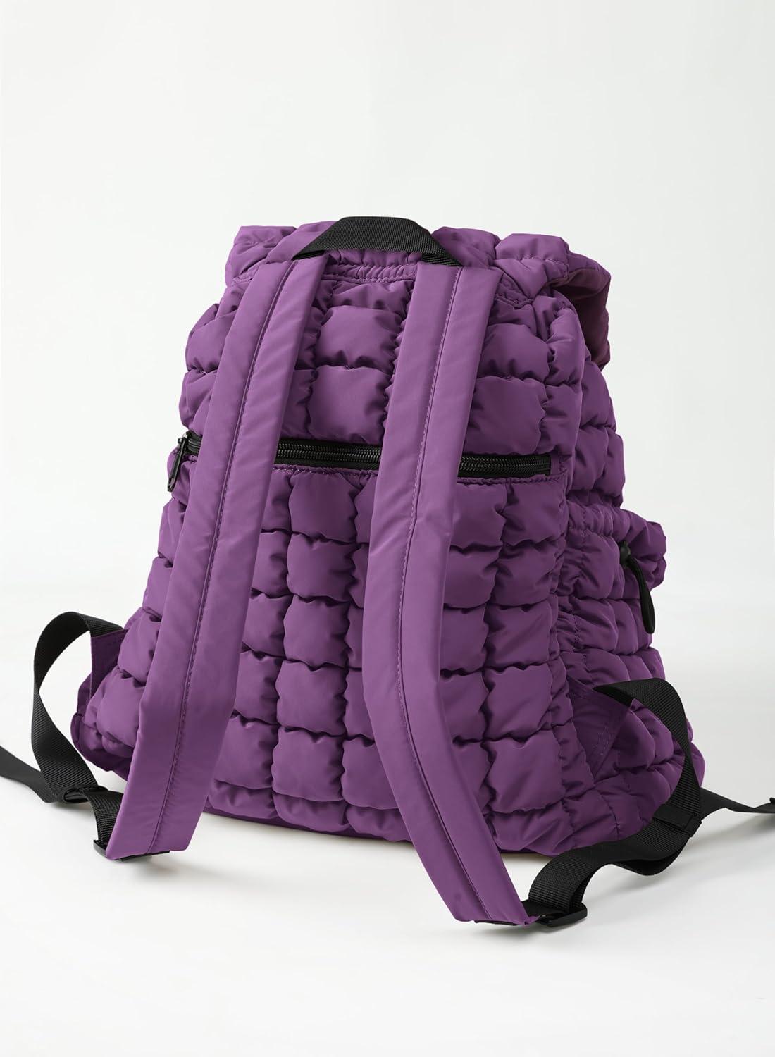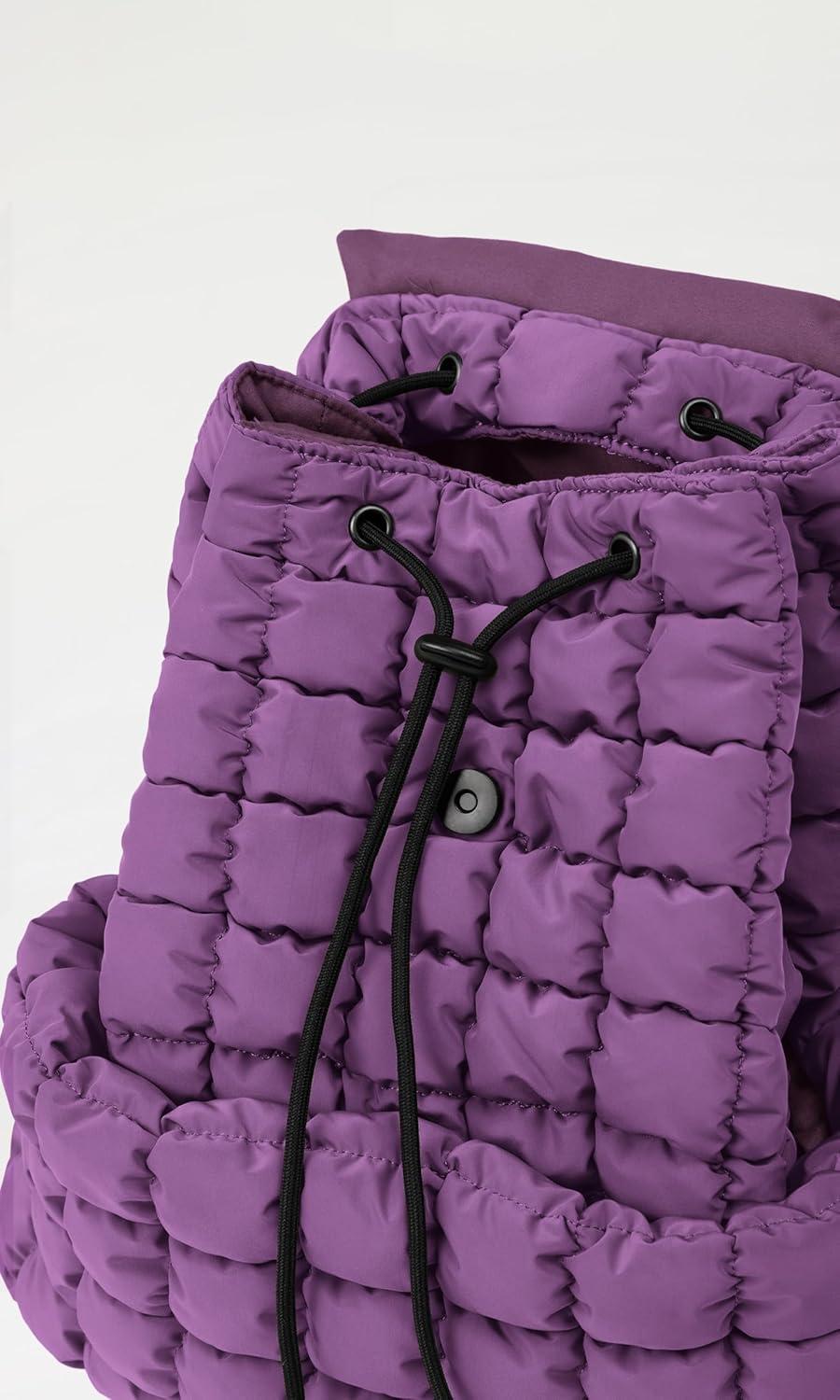 ODODOS Quilted Backpack 2.0 for Women Lightweight Puffer Hiker Pack Drawstring Padding Travel Gym Bag, Black(Deep Purple)