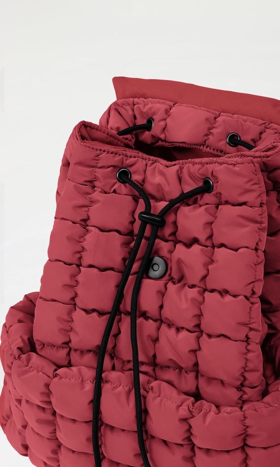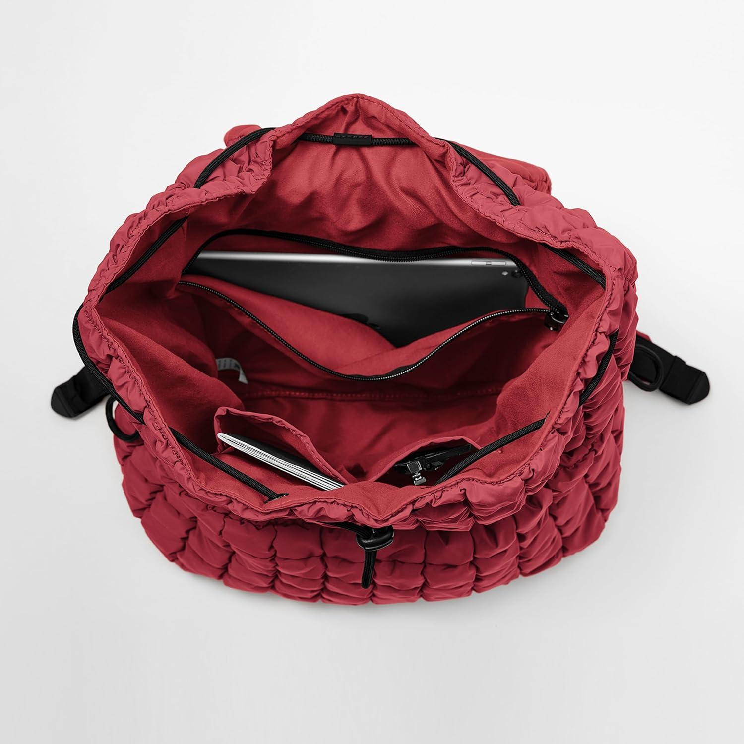 ODODOS Quilted Backpack 2.0 for Women Lightweight Puffer Hiker Pack Drawstring Padding Travel Gym Bag, Black(True Red)