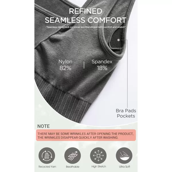 ODODOS Seamless Square Neck Sports Bra for Women Ribbed Crop Tank Casual Low Back Cropped TopsStone Washing Charcoal