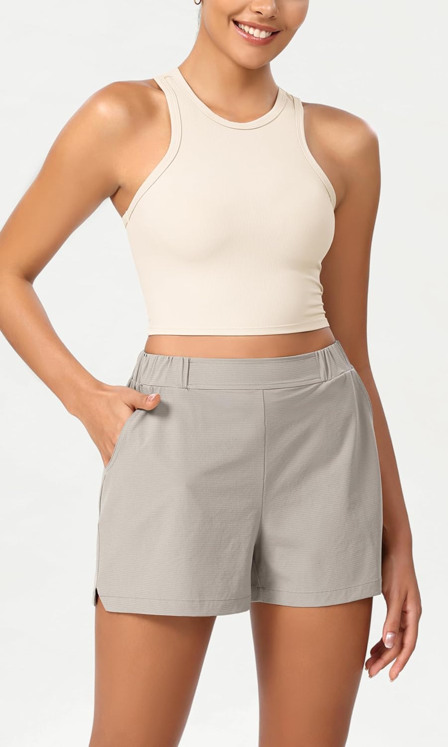 Get your hands on our exclusive ODODOS Stretch Woven Relaxed Shorts for Women Elastic High Waist Summer Lightweight Casual Shorts with Pockets(Light Gray) collection, now at a discounted price.