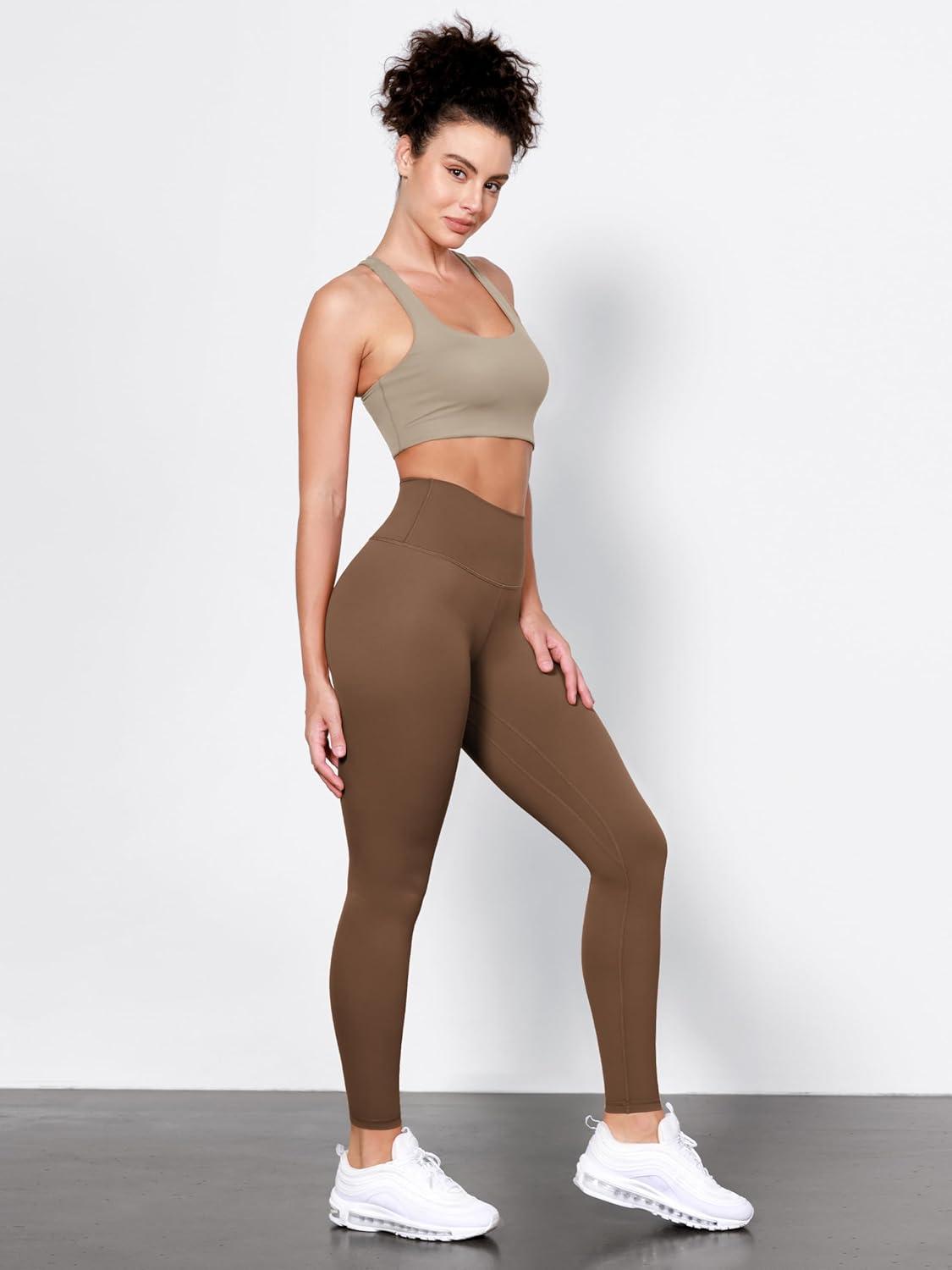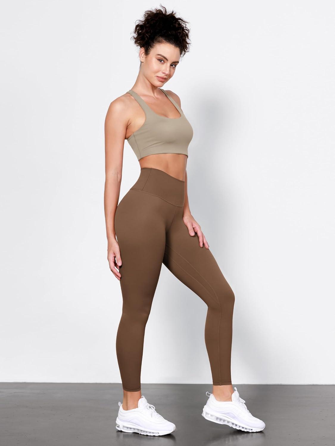 imageODODOS Tummy Control Compression Leggings for Women 25quot  28quot High Waist Workout Running Yoga PantsCaramel