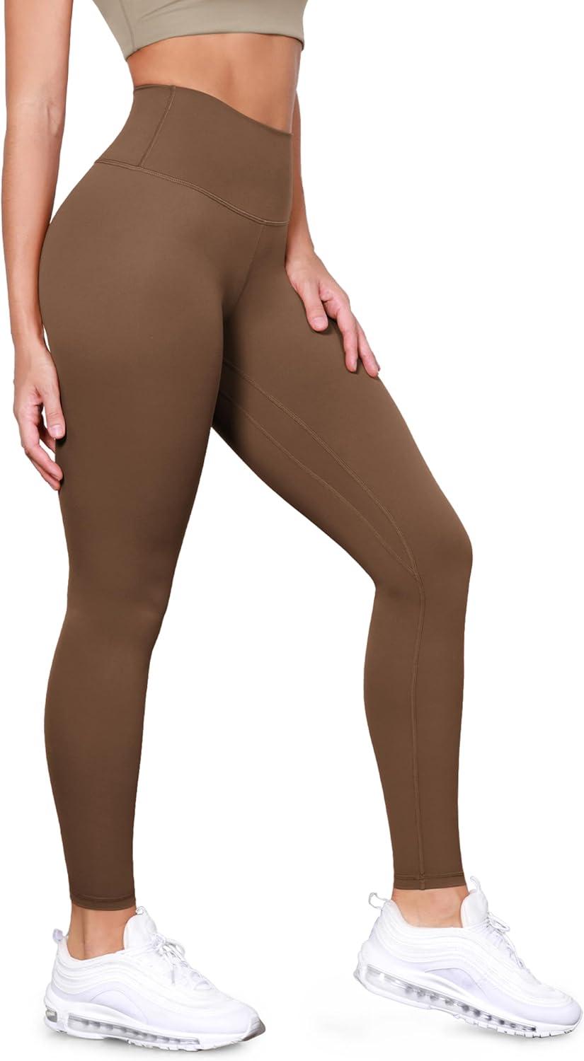 ODODOS Tummy Control Compression Leggings for Women, 25″ / 28″ High Waist Workout Running Yoga Pants(Caramel)