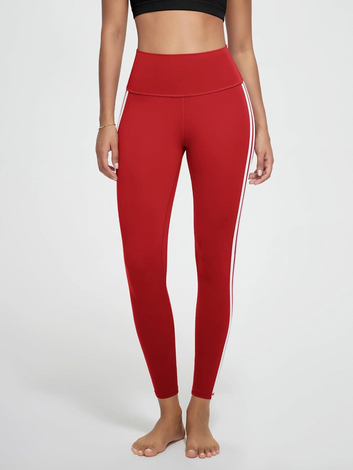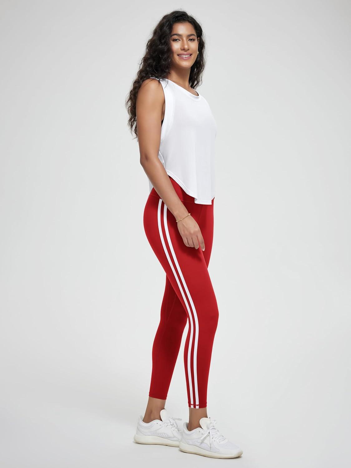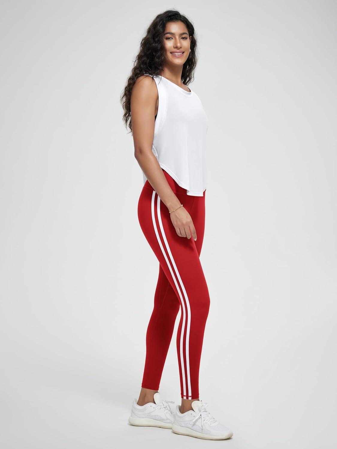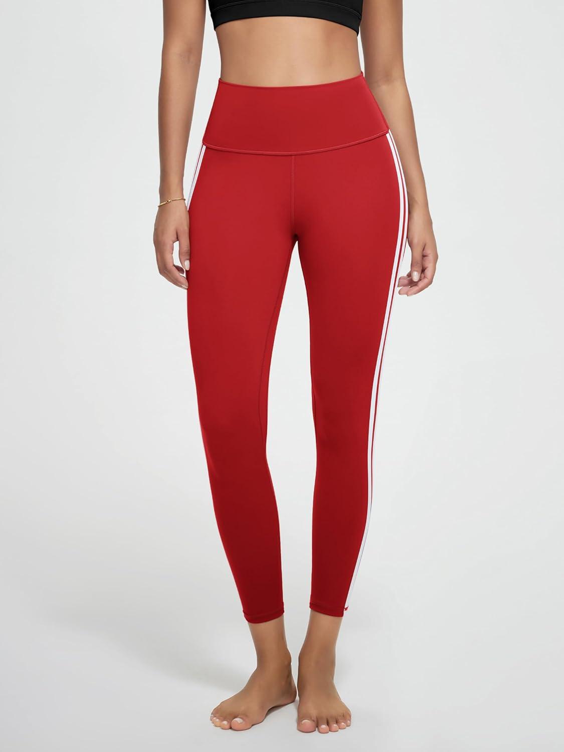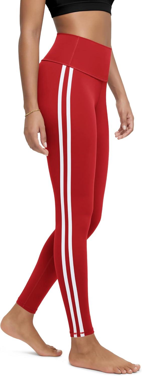 ODODOS Tummy Control Compression Leggings for Women, 25" / 28" High Waist Workout Running Yoga Pants(Piping Red)