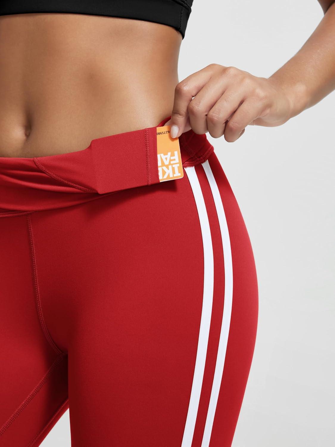 ODODOS Tummy Control Compression Leggings for Women, 25″ / 28″ High Waist Workout Running Yoga Pants(Piping Red)